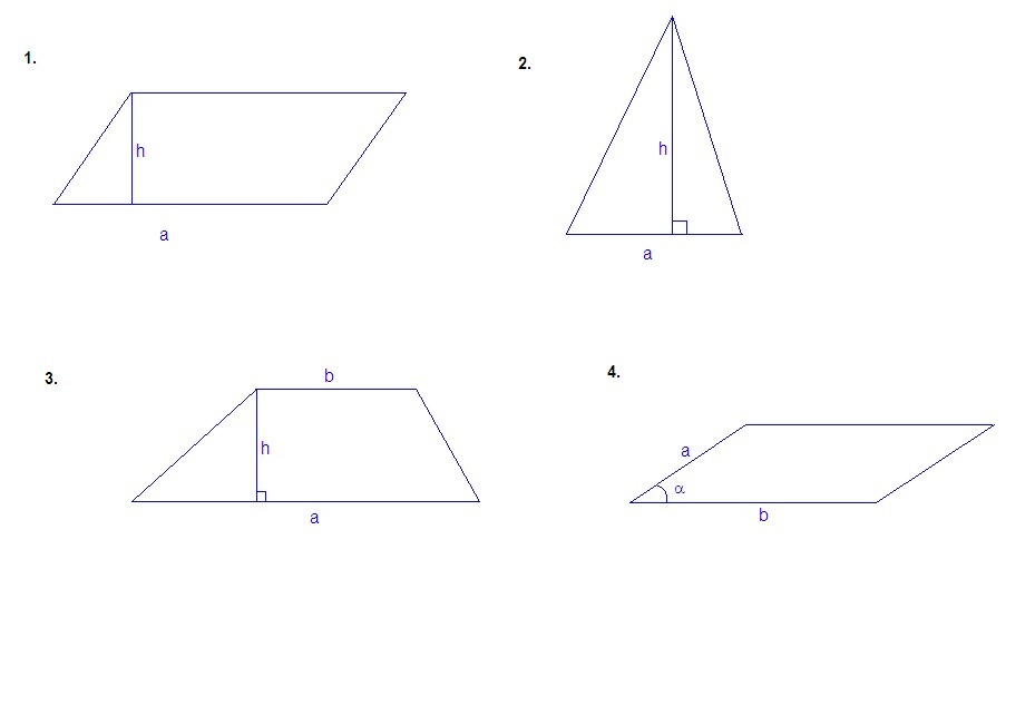 4) Стороны параллелограмма равны 6 и 8 см, а угол между ними равен 30 градусам. Найти площадь параллелограмма.