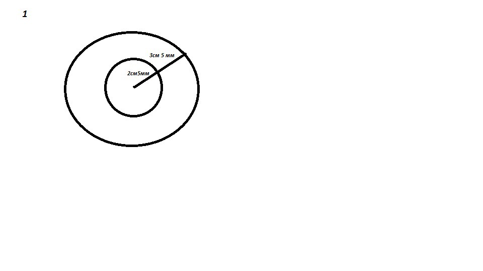 Начерти две окружности, имеющие общий центр. Длина радиуса одной из них равна 2 см 5 мм, а другой - 3 см 5 мм. Имеют ли эти окружности общую часть? Имеют ли круги с такими же радиусами общую часть? ( если нет циркуля))))))