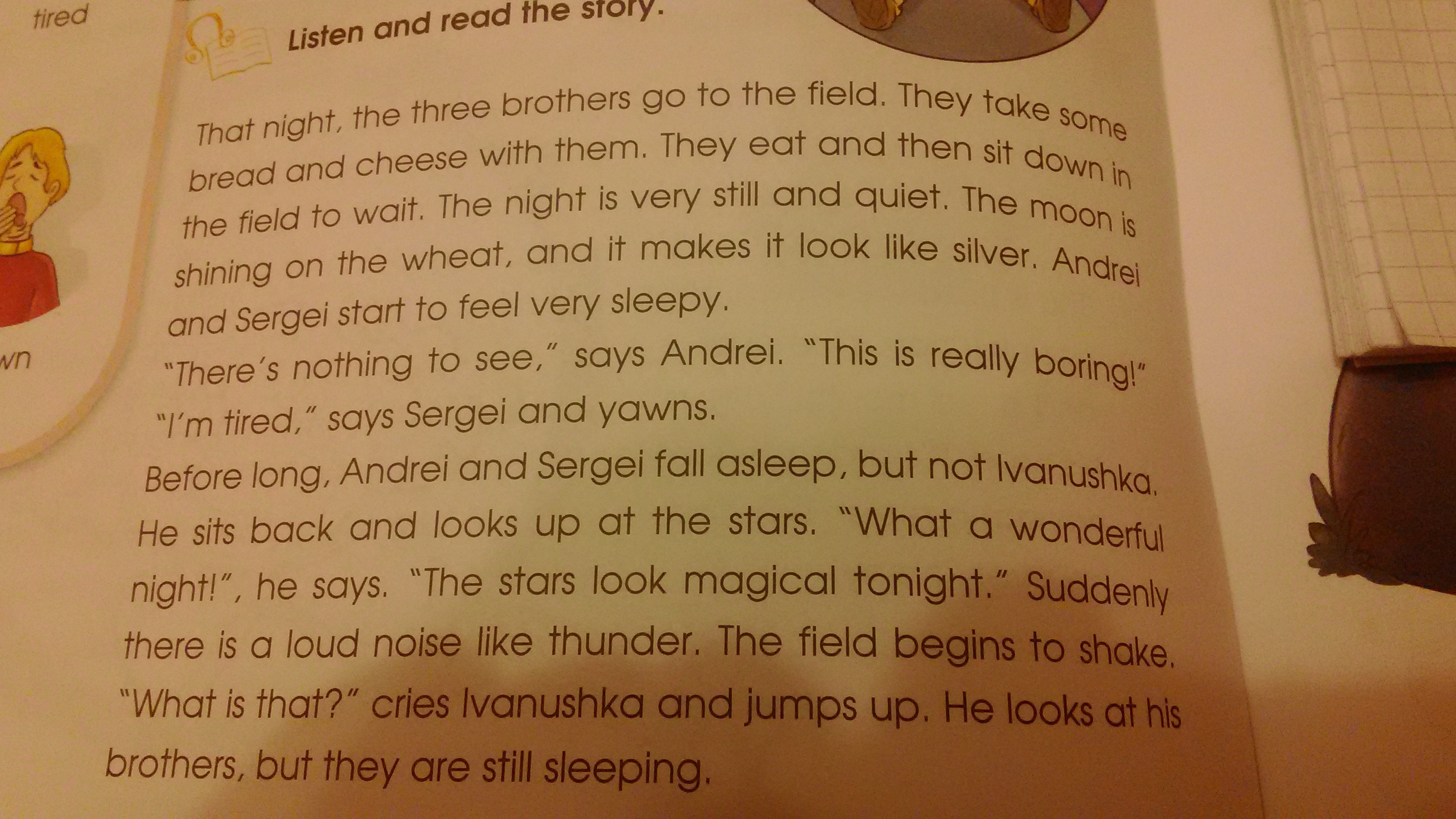 Вскоре ндрей и Сергей уснули, но не Иванушка. Он сел обратно и посмотрел вверх на звезды.