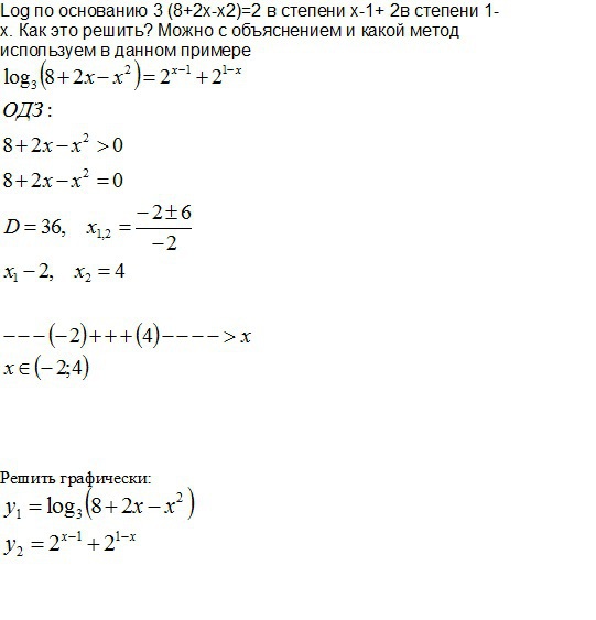 log по основанию 3 (8+2x-x2)=2 в степени x-1+ 2в степени 1-x. Как это решить? Можно с объяснением и какой метод используем в данном примере