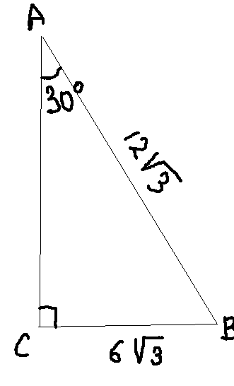 Как известно напротив угла в 30 градусов лежит катет равный половине гипотенузы, отсюда АВ=2ВС=6 корень из 3*2=12 корень из 3.