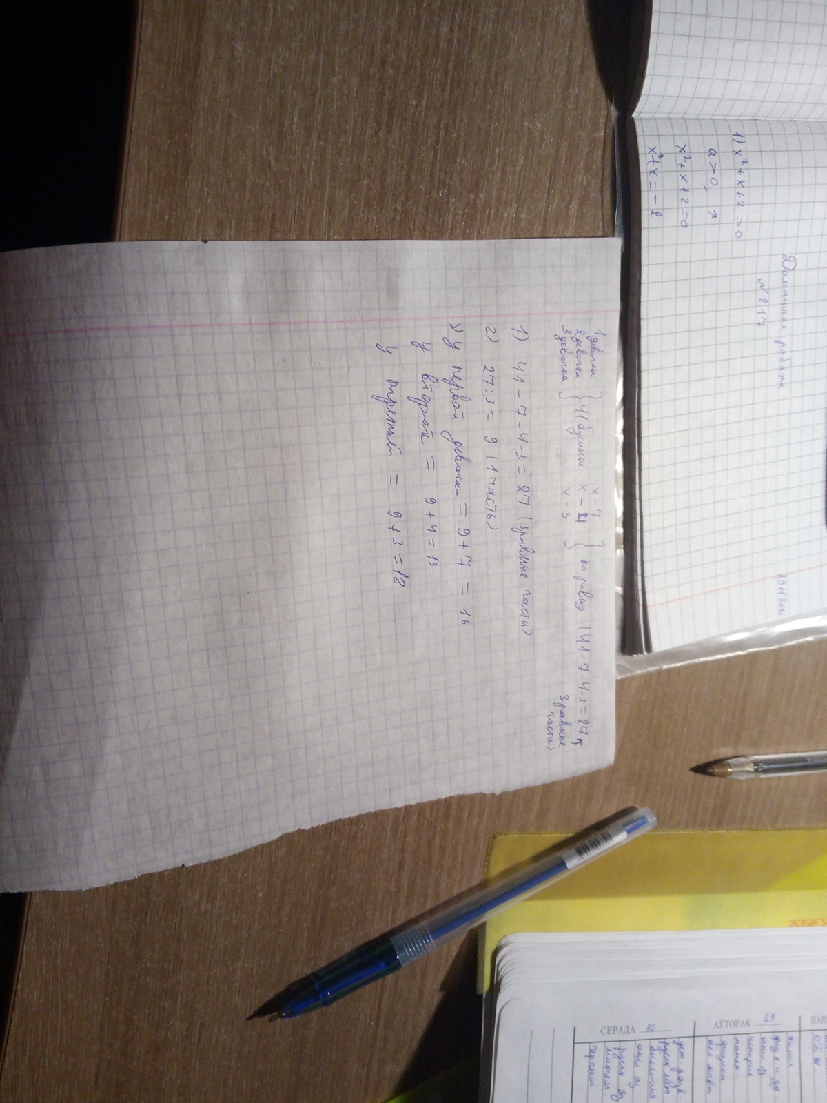У трёх девочек было 41 бусинка.Когда первая девочка отдала 7 бусинок, вторая 4 бусинки, а третья 3 бусинки, у каждой из них осталось одинаковое количество бусинок. Сколько бусинок было у каждой девочки сначала.