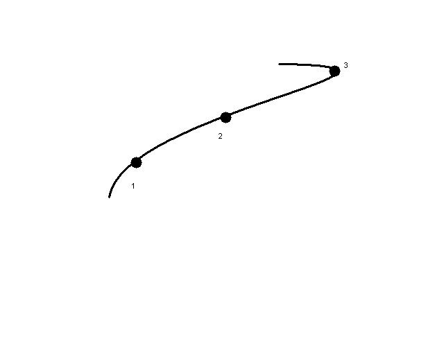 Мотоцикл движется с постояной по модулю скоростью по траектории, представленной на рисунке. В какой из указанных точек траектории центростремительное ускорение максимальное?