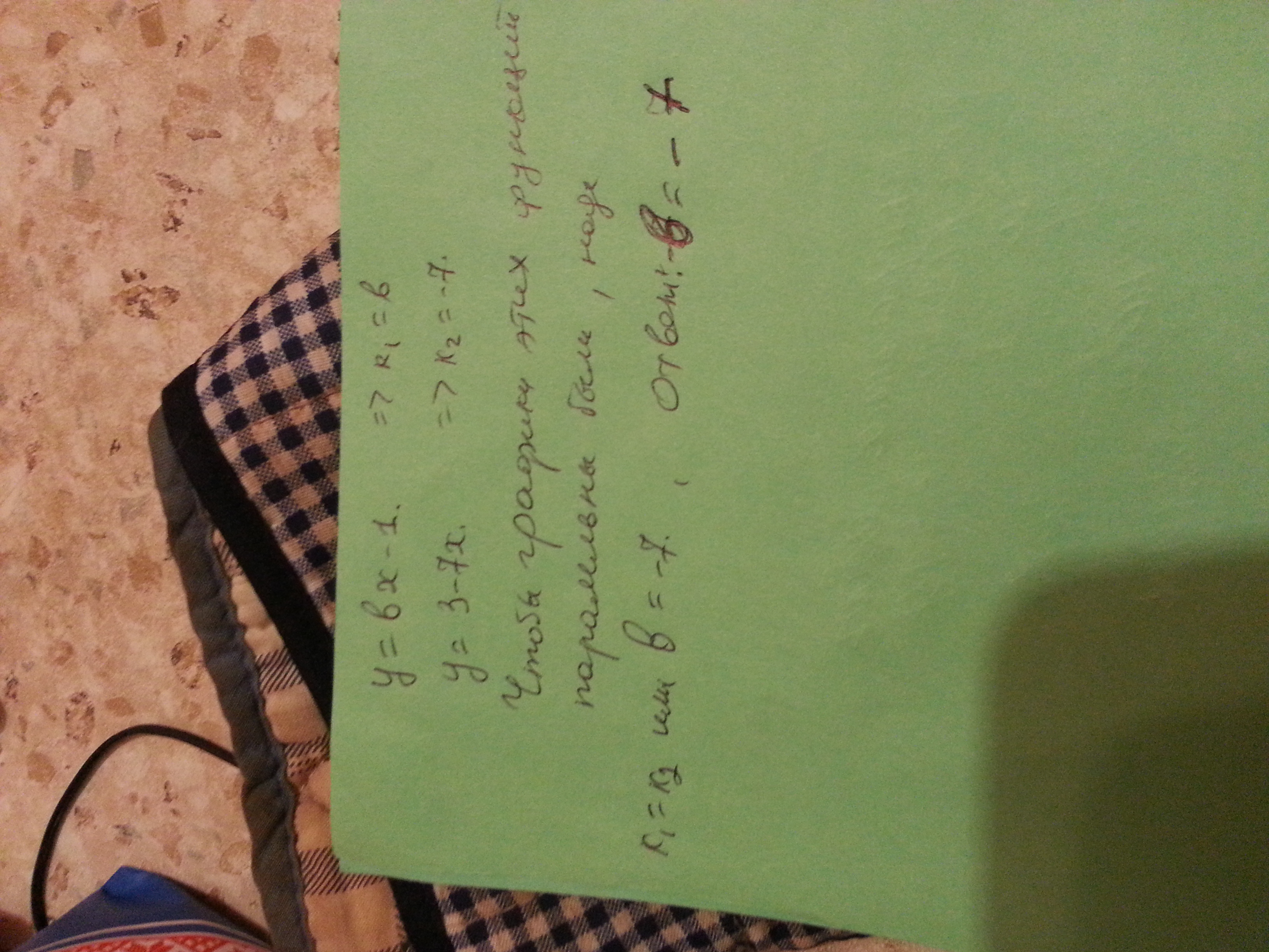У линейных параллельных графиков равны k, т.е. y=-7x-1 y=-7+3