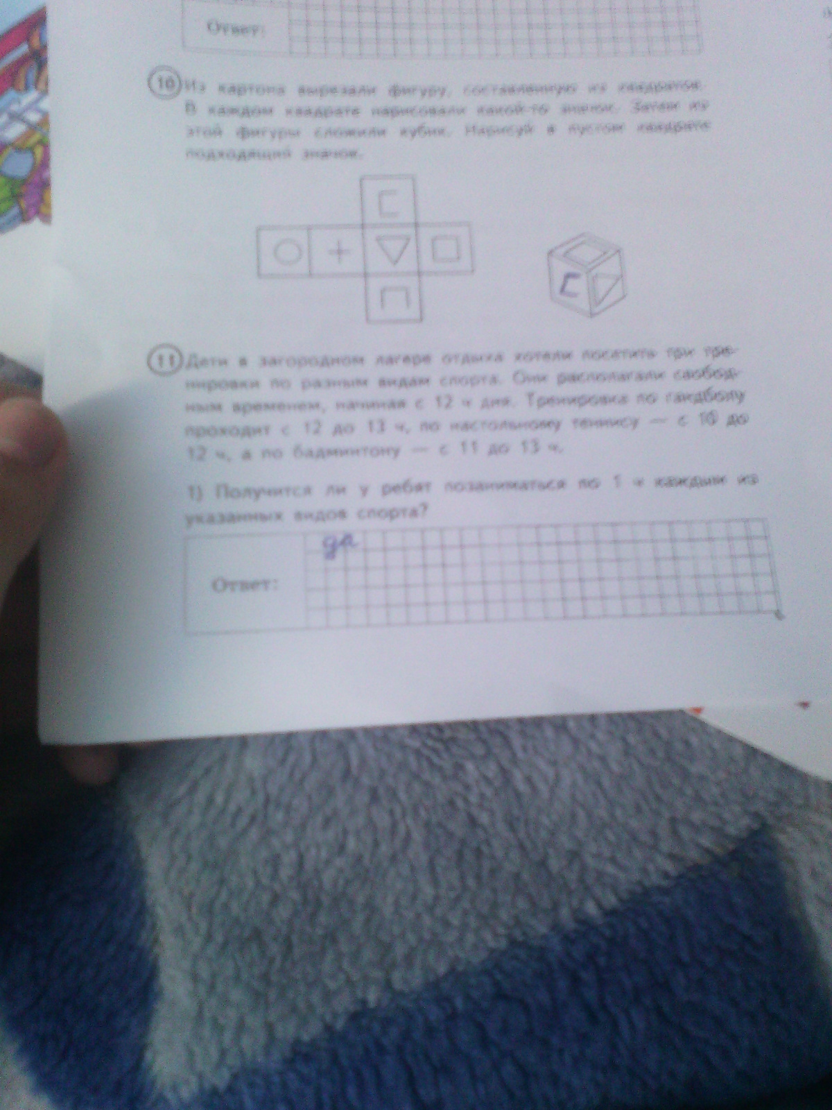 2) после какой тренировки ребята пойдут на гандбол?