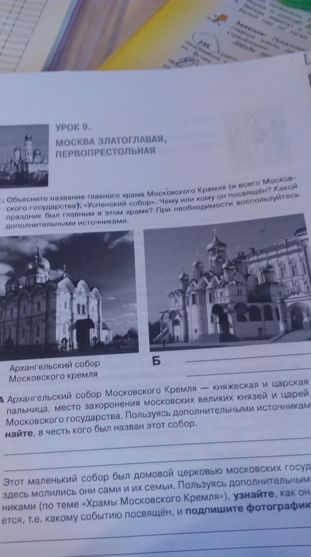 Вопрос 1 : Архангельский собор Московского кремля назван в честь ангела из библейских книг - Архангела Михаила. В православии его называю Архистратигом.