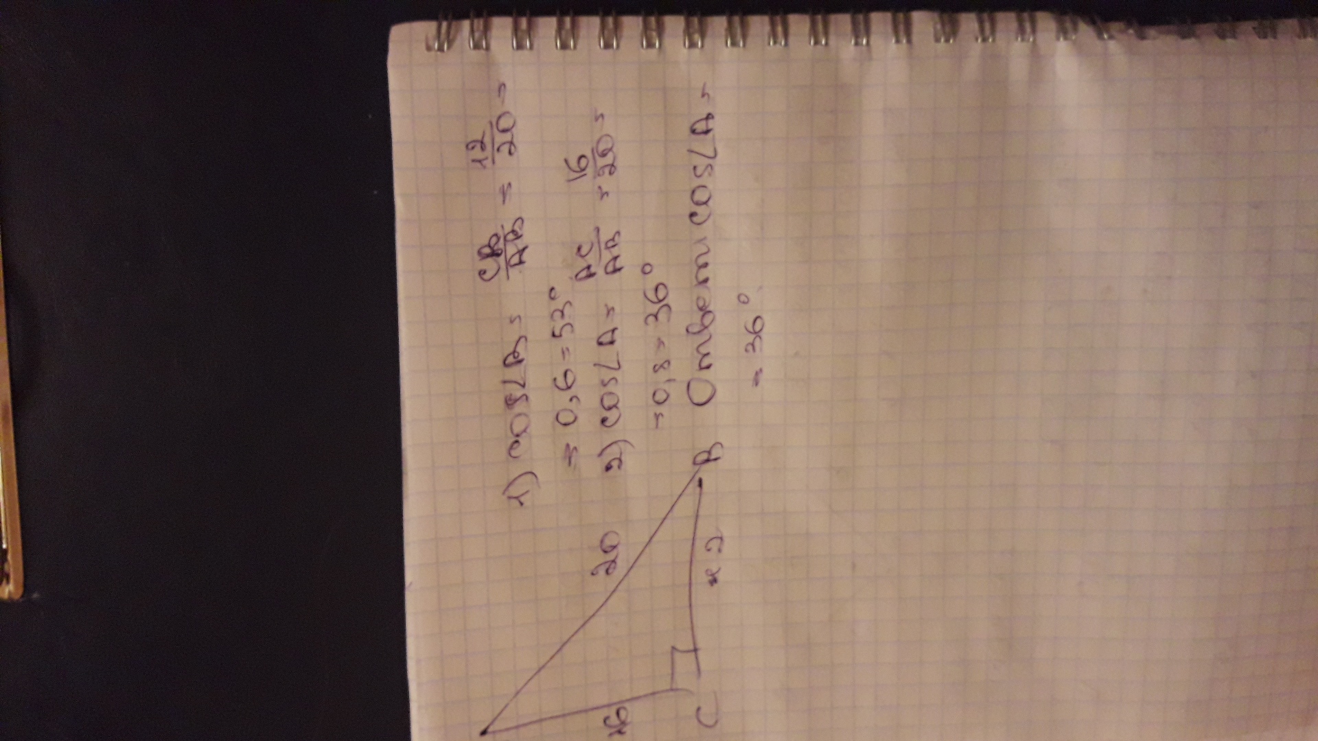 в прямоугольном треугольнике АВС угол С=90°, АВ=20см, АС=16см, СВ=12см. Найдите косинус меньшего угла.