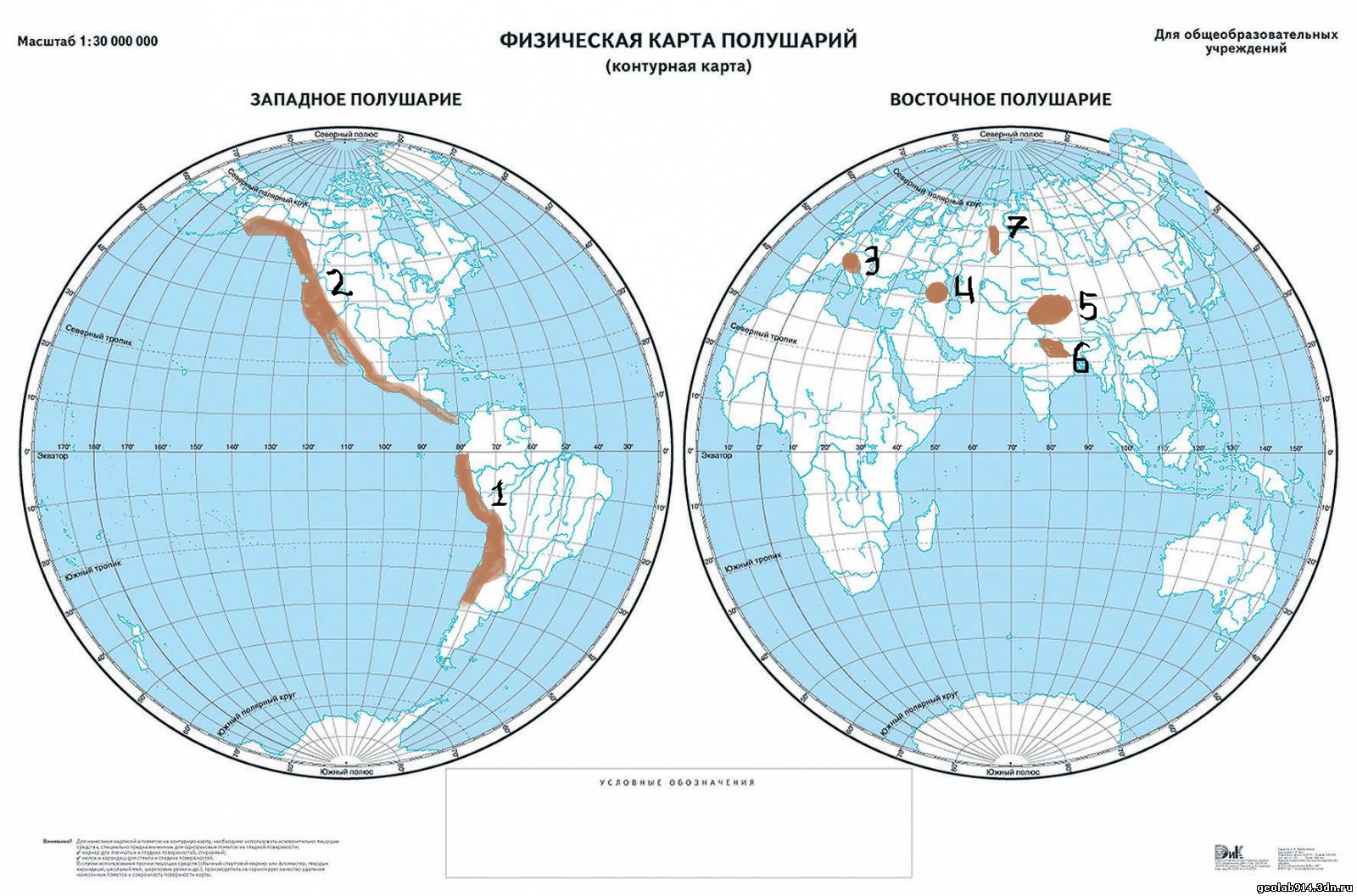 Помогите!!! Нам на карте полушария нужно найти горы Анды, Кордильеры, Альпы, Кавказ, Тянь-Шань, Гималаи, и Уральские горы.