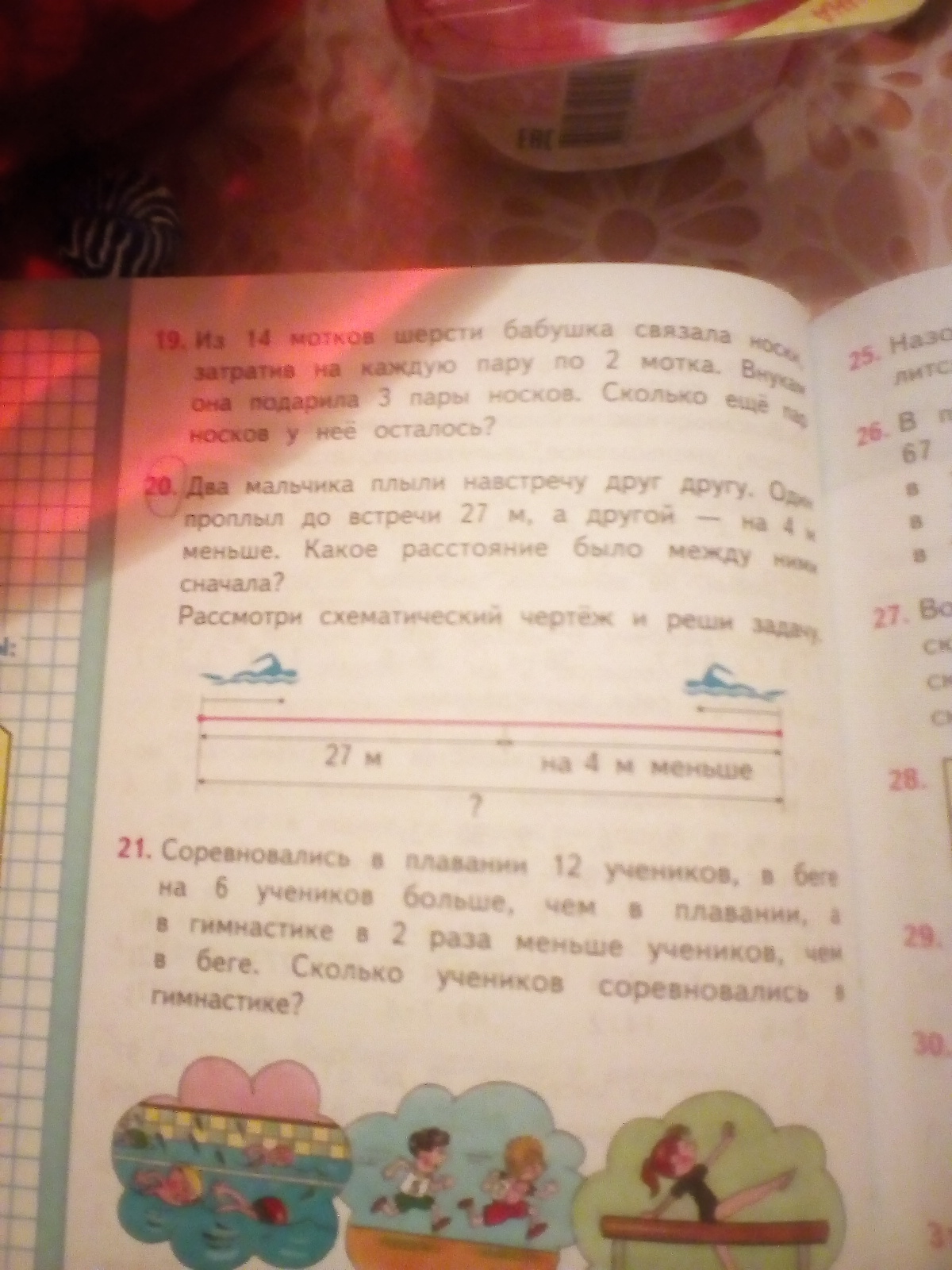 мальчика плыли навстречу друг другу Один проплыл до встречи 20 метров а другая на 4 метра меньше какое расстояние было между ними сначала Рассмотри схематический чертеж и реши задачу