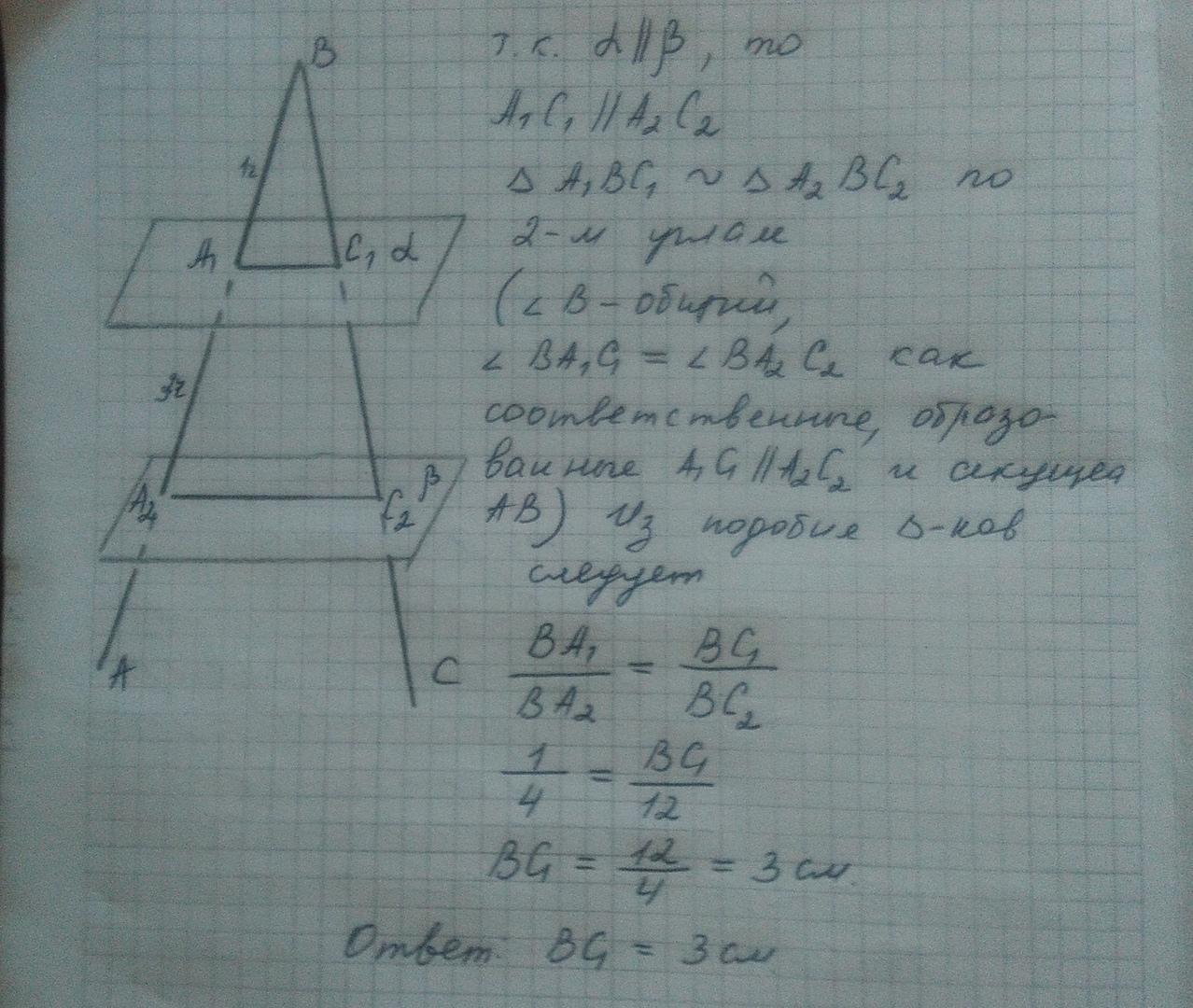 параллельные плоскости альфа и бета пересекают стороны угла АВС в точках А1 С1 А2 С2 соответственно.Найдите ВС1,если А1В:А1А2=1:3,ВС2=12см