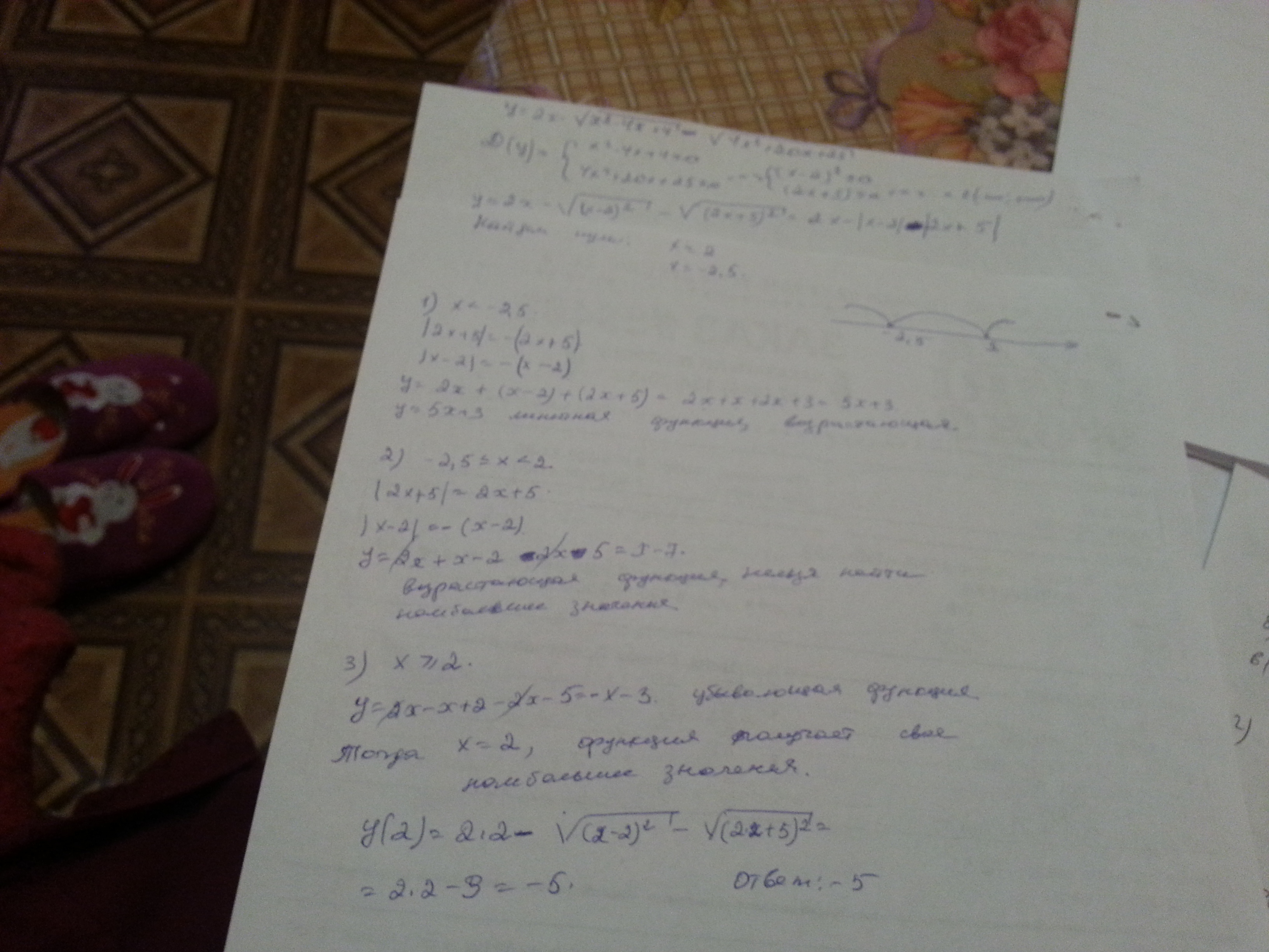 возрастает ,у наиб=5*(-2,5)+3=-9б5