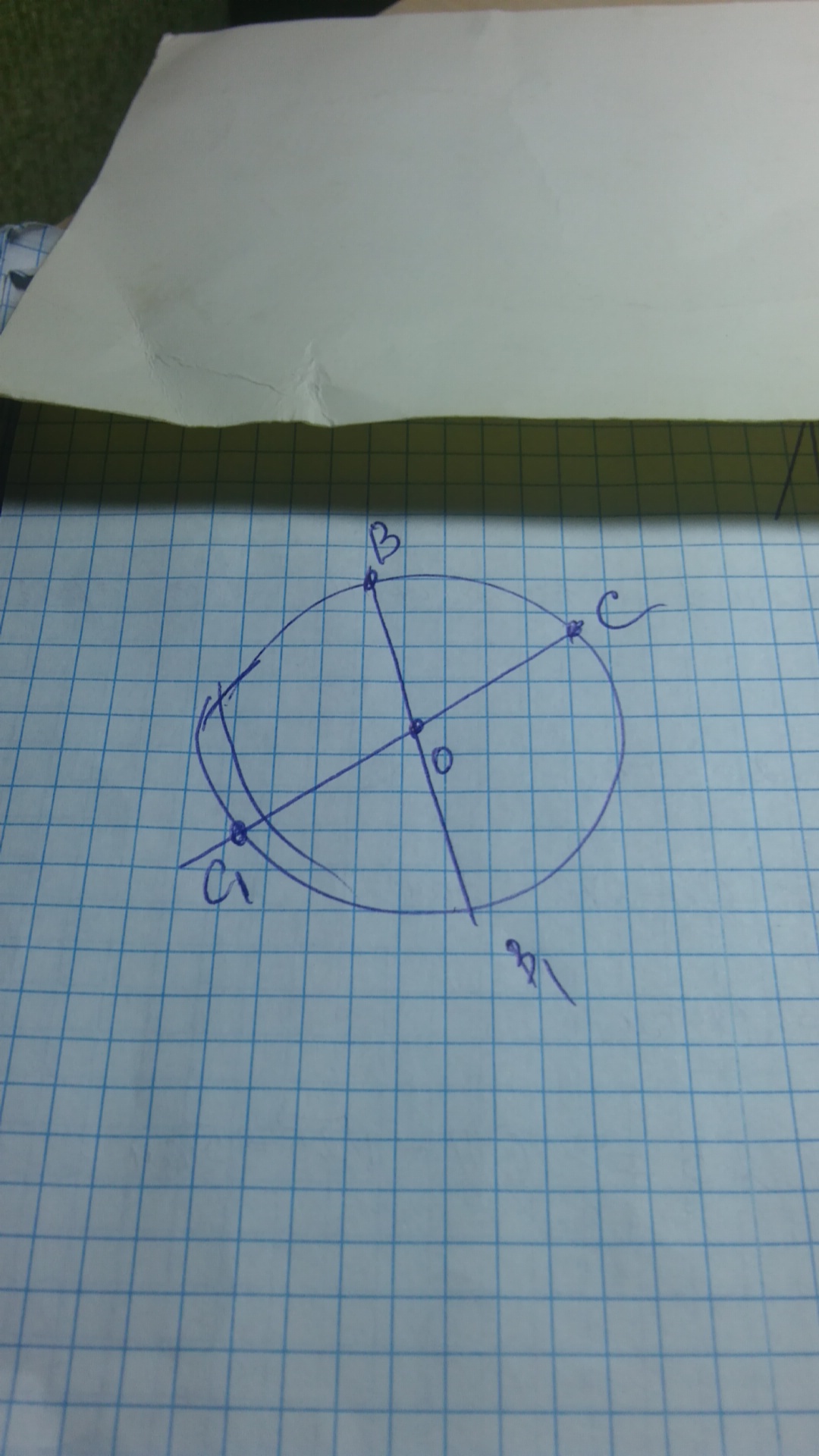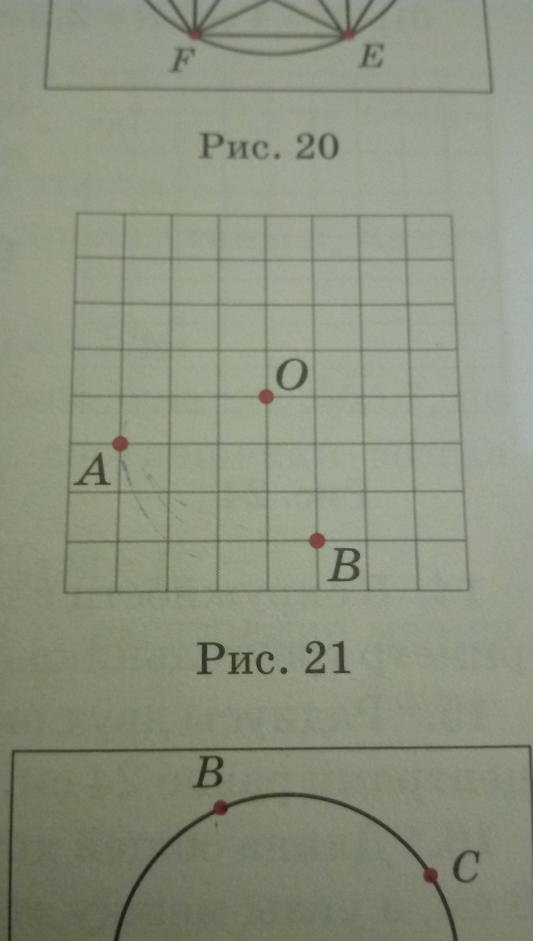 На рис.21 изображены центр О окружности и 2 точки, A и B. Укажите: а)точку, диаментрально противоположную точке A; б)точку, диаментрально противоположную точке B.