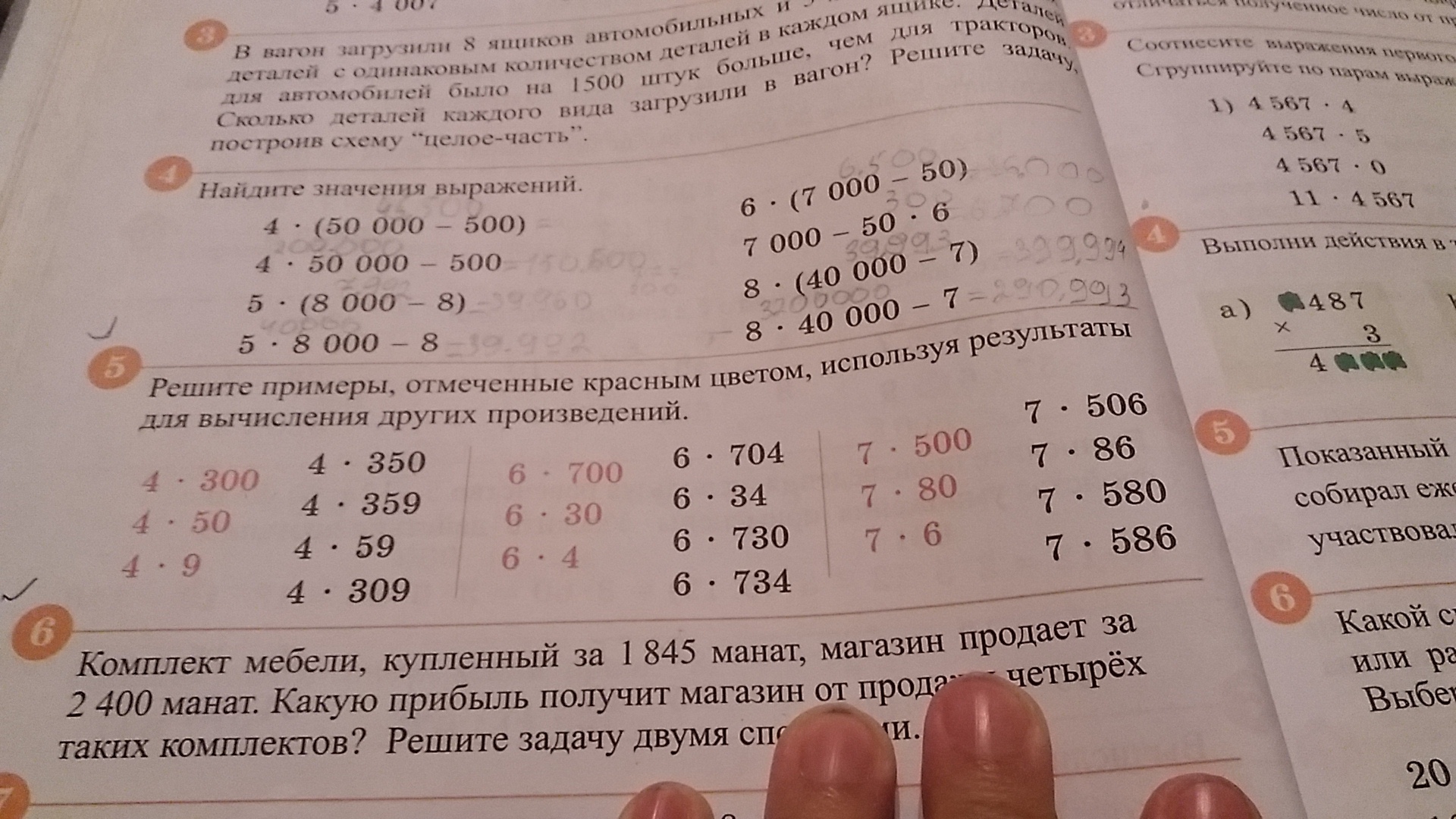 4*300=1200,4*50=200,4*9=45,6*700=4200,6*30=180,6*4=24,7*500=3500,7*80=560,7*6=42