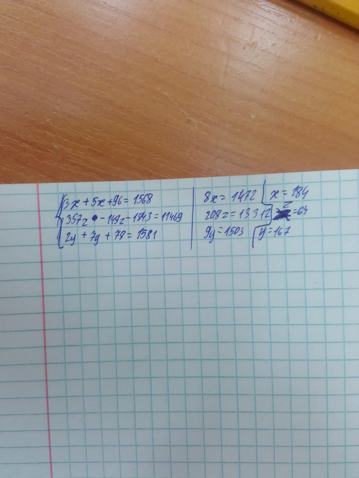 решите пожалуйста уровнение1) 3x +5x+96=1568
