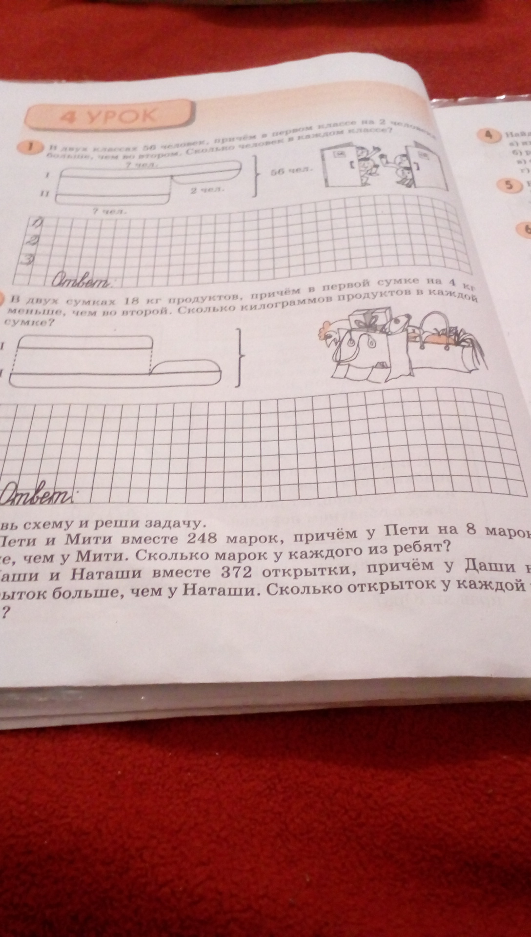 Ответ: в первой сумке 7 кг продуктов, во второй 11 кг продуктов.