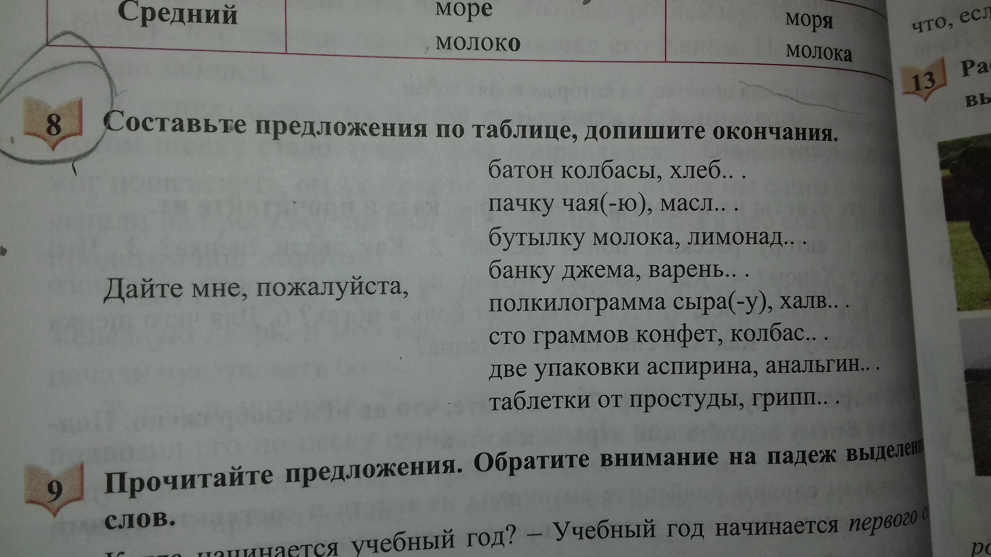 Дайте мне, пожалуйста, батон колбасы, хлеба. Дайте мне, пожалуйста, пачку чая, масла. Дайте мне, пожалуйста, бутылку молока, лимонада. Дайте мне, пожалуйста, банку джема, варенья. Дайте мне, пожалуйста, пол кг сыра, халвы. Дайте мне, пожалуйста, 100 гр конфет, колбасы. Дайте мне, пожалуйста, две упаковки аспирина, анальгина. Дайте мне, пожалуйста, таблетки от простуды, гриппа.