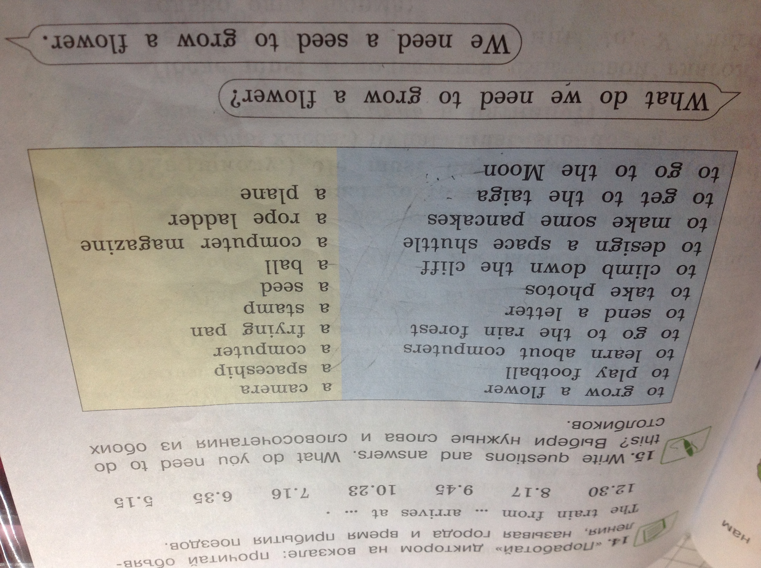 Первая строка пример как писать в тетради. То, что написано капсом подставляешь те слова, что ниже в столбике.