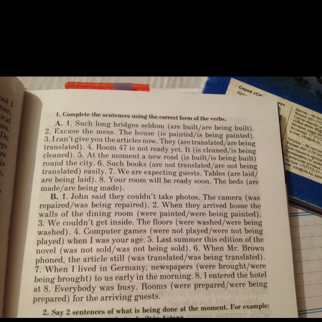 a. are built; is being painted; are being translated; is being cleaned; is being built; are laid (?); are being made