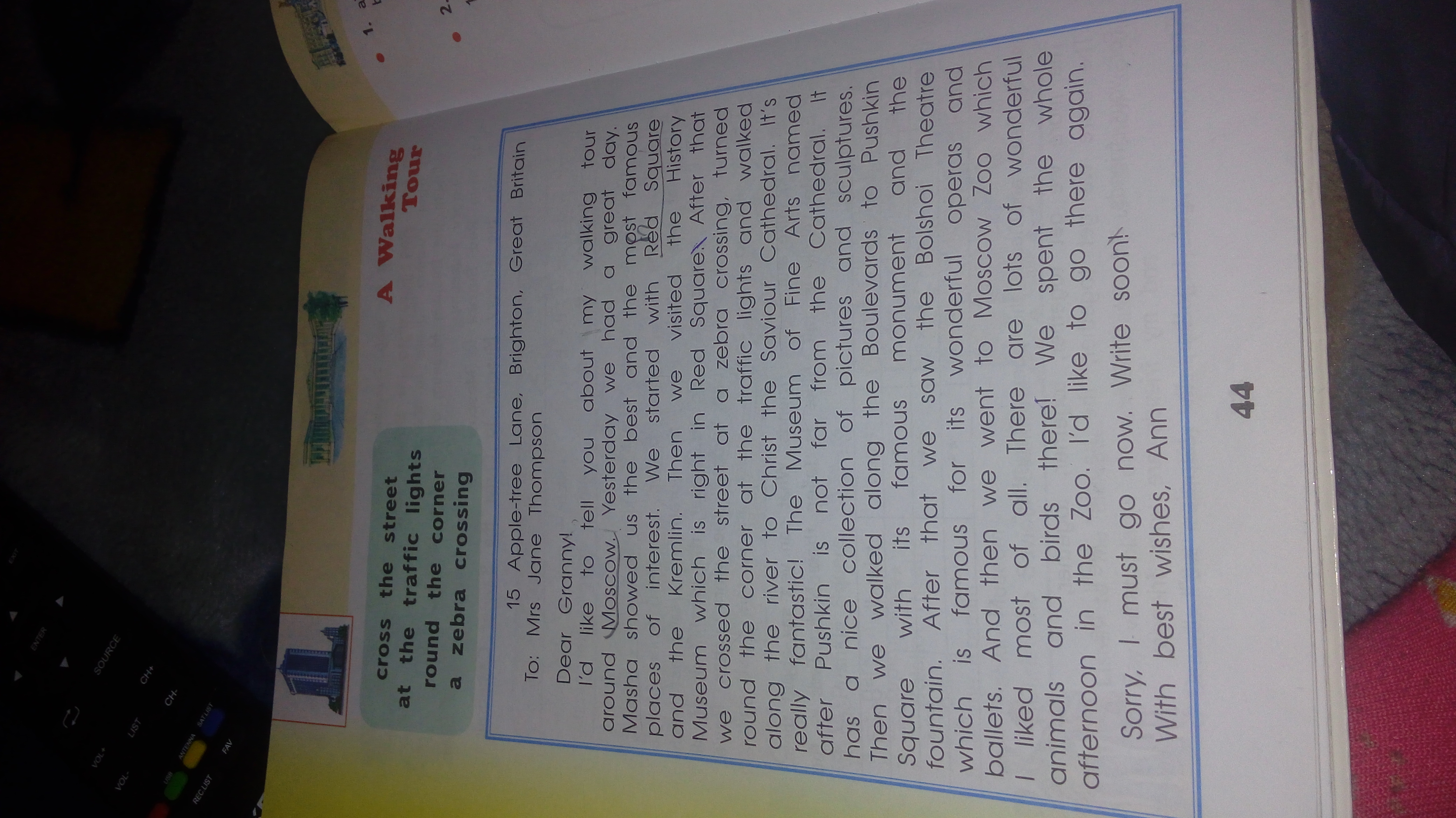 прочитай письмо снова и ответь на вопросы. 1.Что делали Анна и ее семья вчера? 5 Чем знаменит Большой театр 6Почему Анне нравится зоопарк