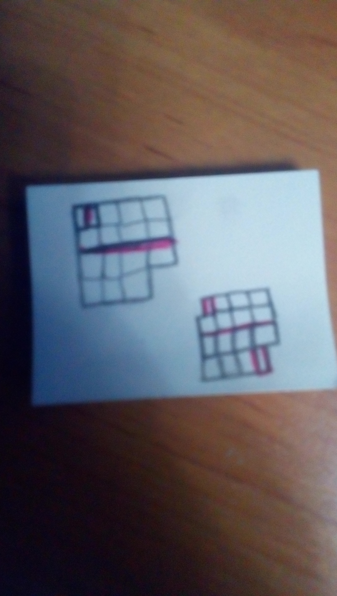 2 кусочек-верху 3 штуки и слева во втором ряду 2 кусочка