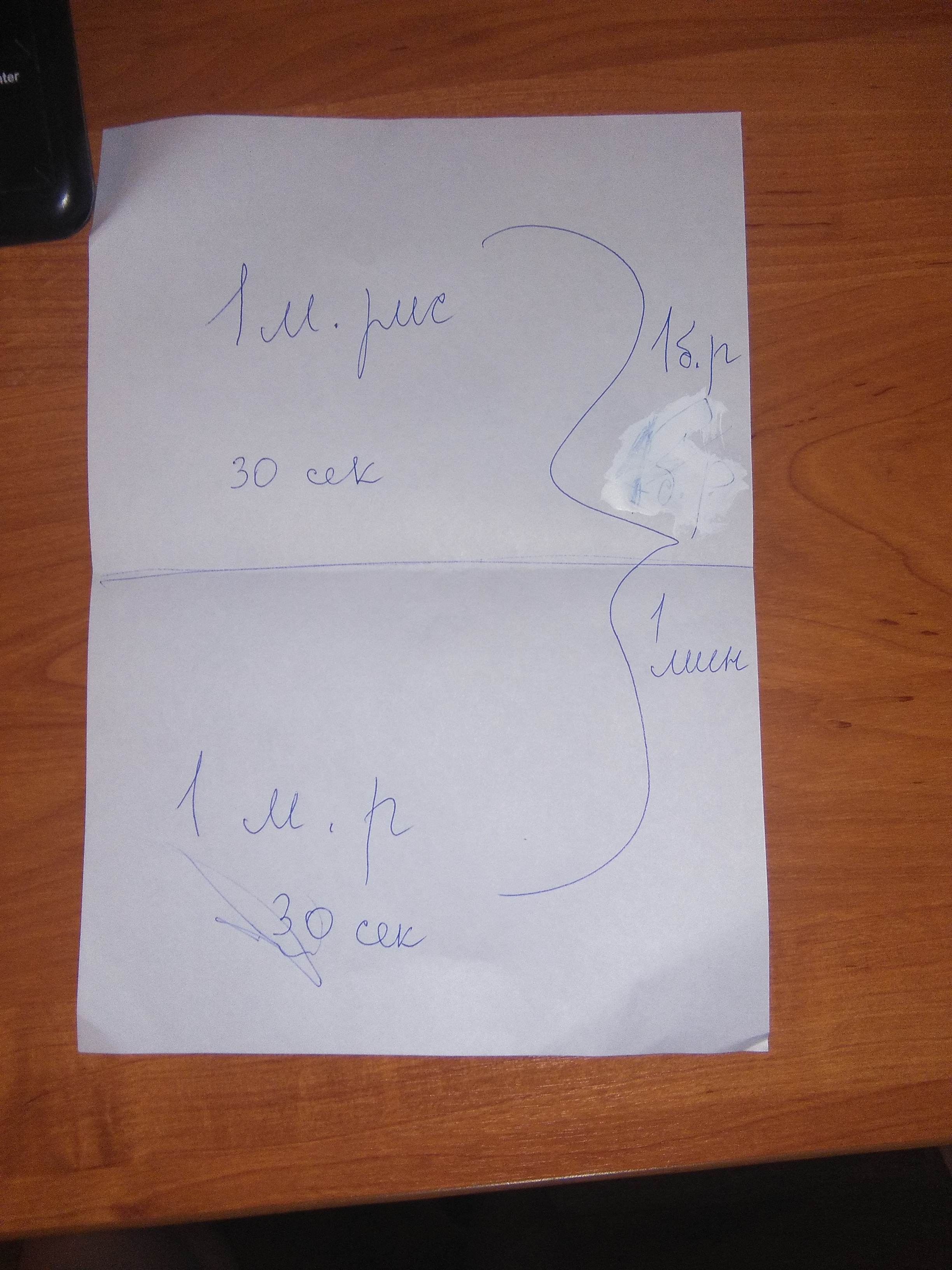 Ответ: 2 минуты уйдёт на 2 больших рисунка, т.е. 1 минута на один. P.S. а на маленький один идёт 1/2 мин. или 30 секунд, это тоже самое что пол листа А4 - маленький рисунок(30 сек), и полный листА4- 1 большой рисунок