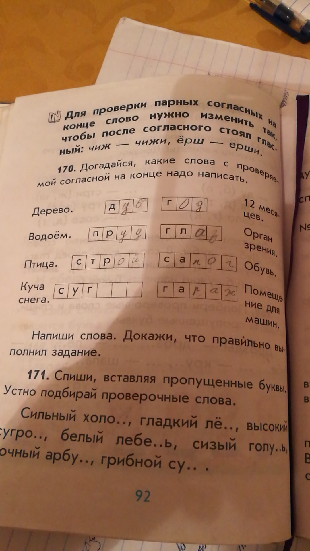 В скобках написаны проверочные слова согласной буквы на конце слова.
