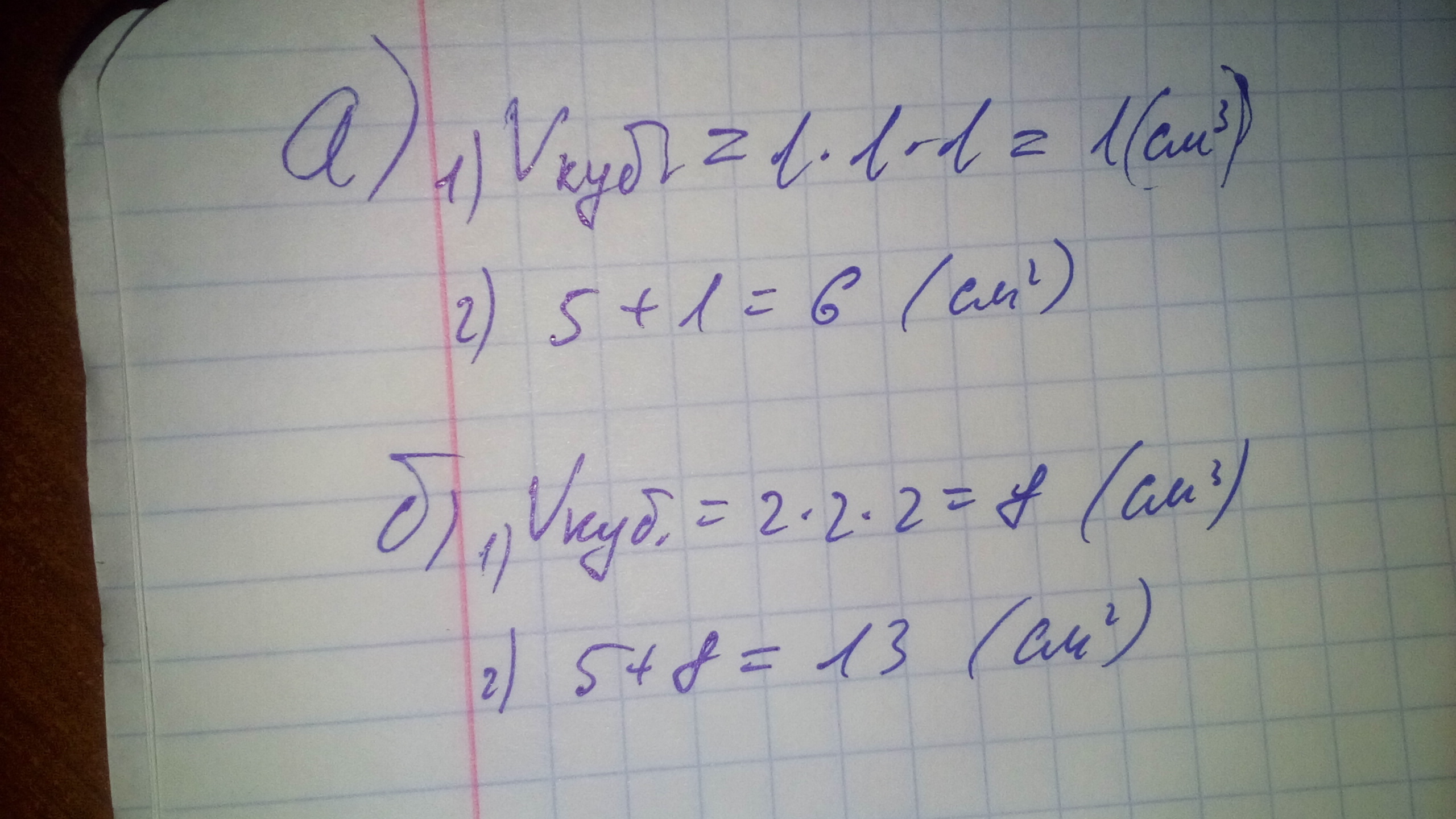 сосуде было 5 кубических сантиметров воды Отметь уровень воды в этом сосуде после того как в него погрузить металлический кубик с ребром а)1 сантиметр б)2 сантиметров