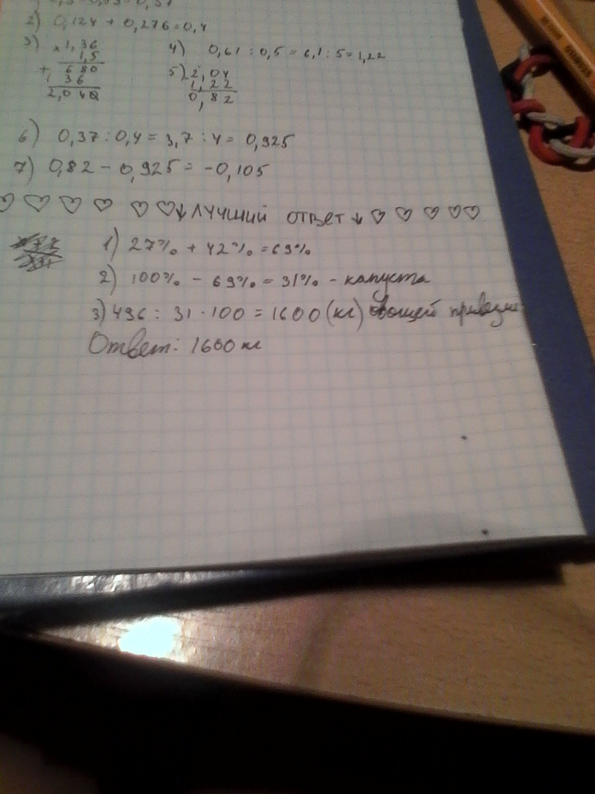 Сколько килограммов овощей привезли в магазин, если огурцы составляют 27% овощей, картофель-42%, а остальные 496 кг- капуста?пожалуйста помогите)