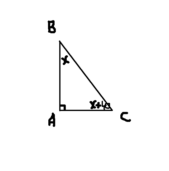 В любом треугонике сумма всех углов = 180 градусов, т.е. если угол А равен 90 градусов, то угол В + угол С = 180-90-90 градусов. угол В пусть будет = х, тогда угол С=х+40, можно составить уравнение: