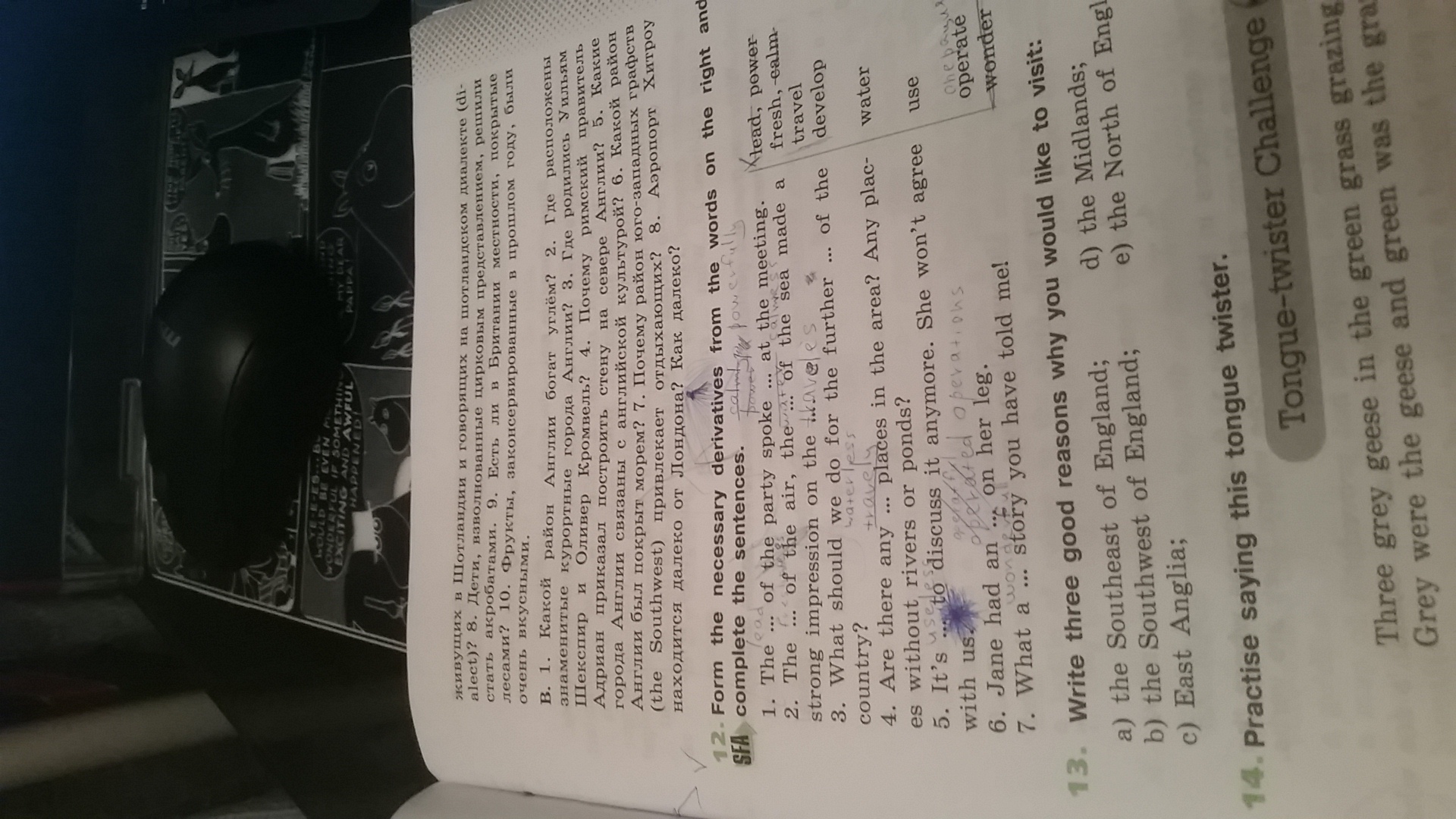select)? 8. Children 111-1e circus performances, acrobats. Become Britain is covered by forests? 10. Fruits, upowlom year, 6 Ali. 1. What area of England bognt where the coal? 2 well-known resort towns of England? 3. Where born Uilstm Shakespeare and Oliver Cromwell? 4 Why build when Adrian Roman stenry the north of England 5. The area of the city are connected with England English Culture 6. What England was covered by the sea? T. why the area south-zamadnyh (the Southwest) a rest? 8 Aopoport Hvtrou draws is far from London? How far? 1 Form the derivatives from the words on the right an necessary SFA complete the sentences. 1. The of the party spoke at the meeting ead, power. 2. The of the air, the the sea made a fresh, calm, travel strong impression on the.M e develop 3. What should do for further of the we the country? plac- water 4. Are there any places in the area? Any es without rivers or ponds? use 5. It's to discuss it anymore. She will not agree operate with us 6. Jane had an on her leg. told me! 7. What a story you have 13. write three good reasons why you would like to visit d) the Midlands; a) the southeast of England; e) the North of Engl