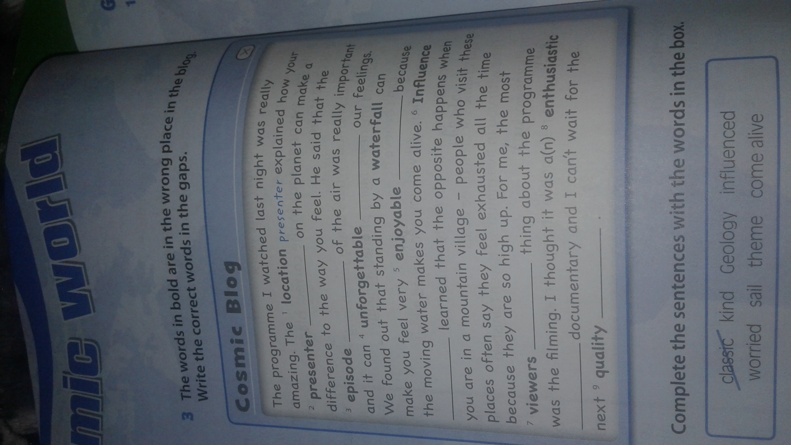 2. location 3. quality 4. influence 5. enthusiastic 6. viewers 7. enjoyable 8. an unforgettable 9. episode