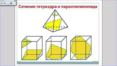 Нарисуйте сечения тетраэдра и параллелепипеда . обратите внимание на жирные точки