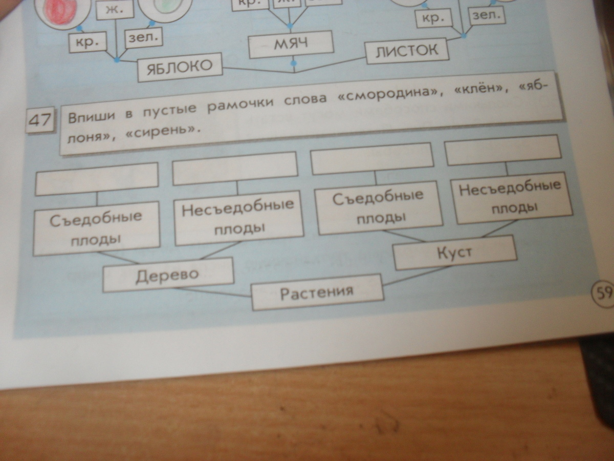 1.яблоня 2. клён 3. смородина 4. сирень