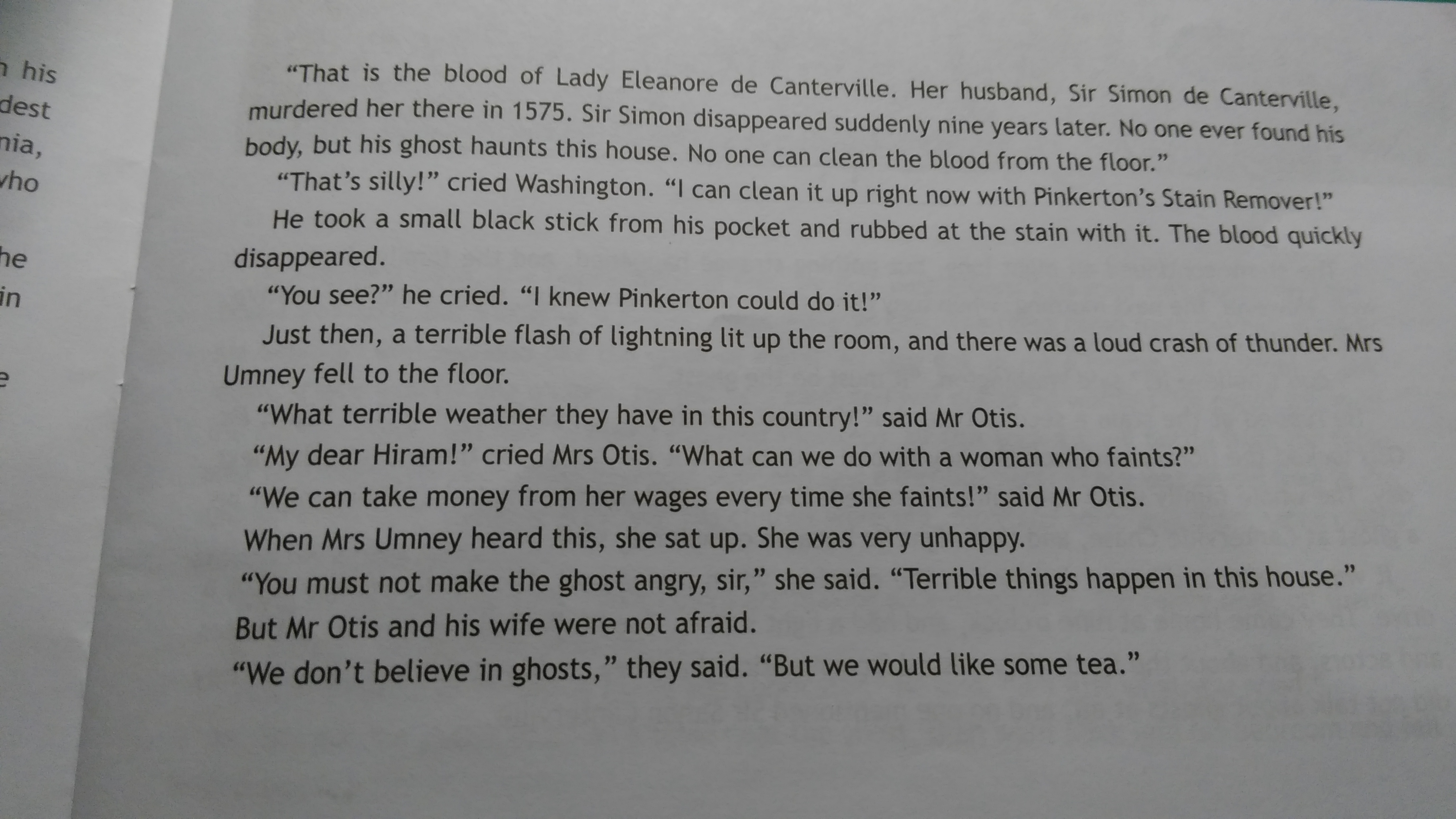 "добро пожаловать в Кентервильский замок" сказала она, "я уже приготовила для вас чай, в библиотеке."