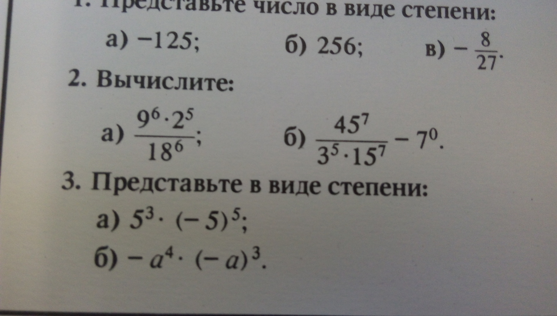 Ответы: ( 1/5)^3 , (-5)^3 , 16^2 3)125-125=0 -a^4*(-a)^3=-a ^12