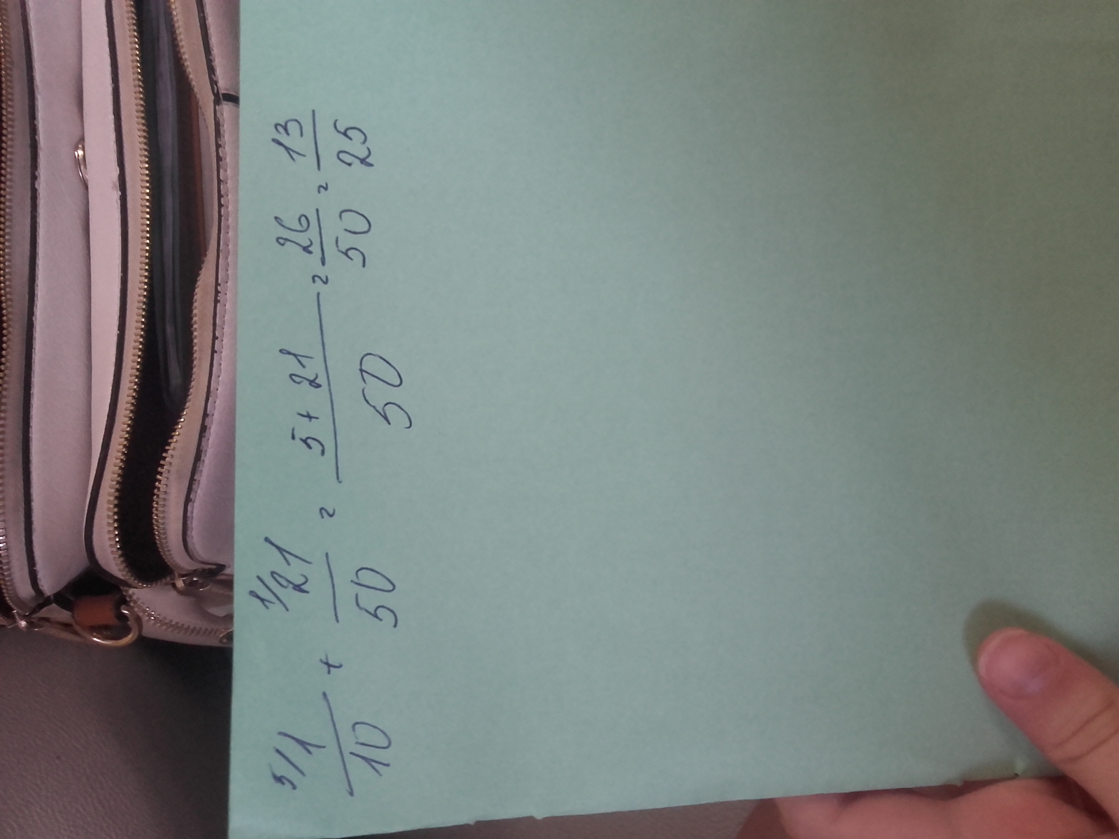 1 * 5 / (10 * 5) + 21 / 50 = (5 + 21) / 50 = 0,52