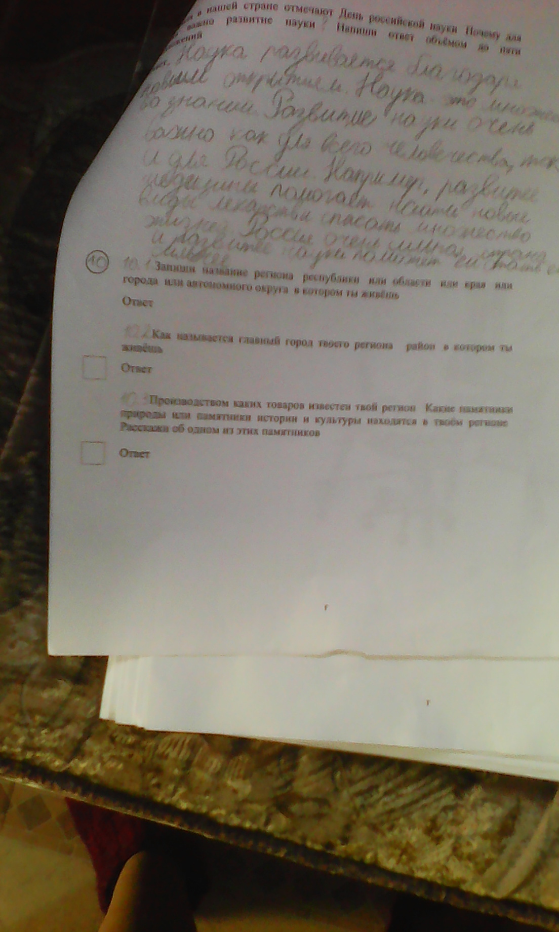 10 1 ты пиши например Красноярский край 10 2 ты пиши например Красноярск 10 3 ты пиши что у тебя в городе или в селе проищводят например хлеб масло асфальт