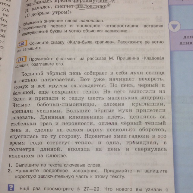 Большой черный пень,лучи солнца,тепло,шесть маленьких ящериц,бабочки-лимонницы,черные мухи,клюквенная плеть,гадюка