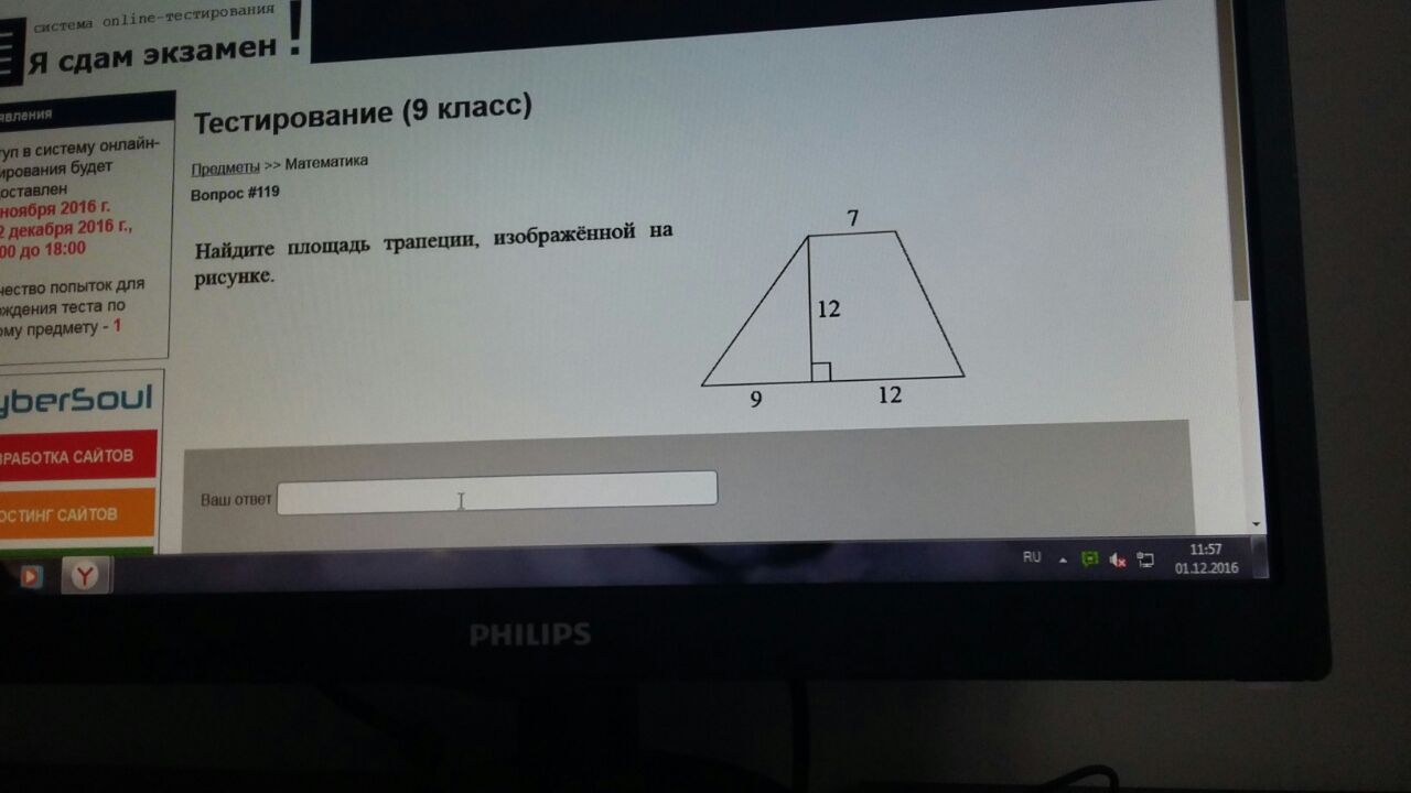 ОЙЙЙЙ ошибся = 168 S треуг.=54(9*6) +S прямоуг. 84 (12*7) + S треуг. 30 (5*6)