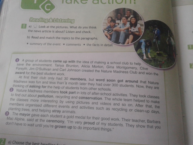 Группе студентов пришла в голову идея создать школьный клуб чтобы помочь сохранить окружающую среду. Таня Брантон, Алиса Мортон, Гина Мортгомери, Клив Фосидс, Джим О'Салливан и Карл Джонсон создали Nature Madness Club и получили награду за лучшую студенческую работу.