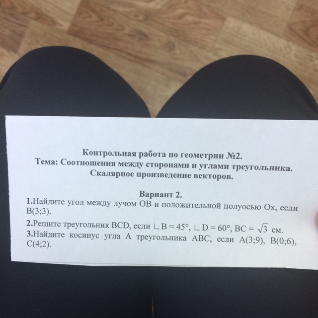 1)Если мы опустим перпендикуляр из В на Ох и обозначим точку рересечения, как Н, то получим прямоугольный тр-к ОВН, у которого