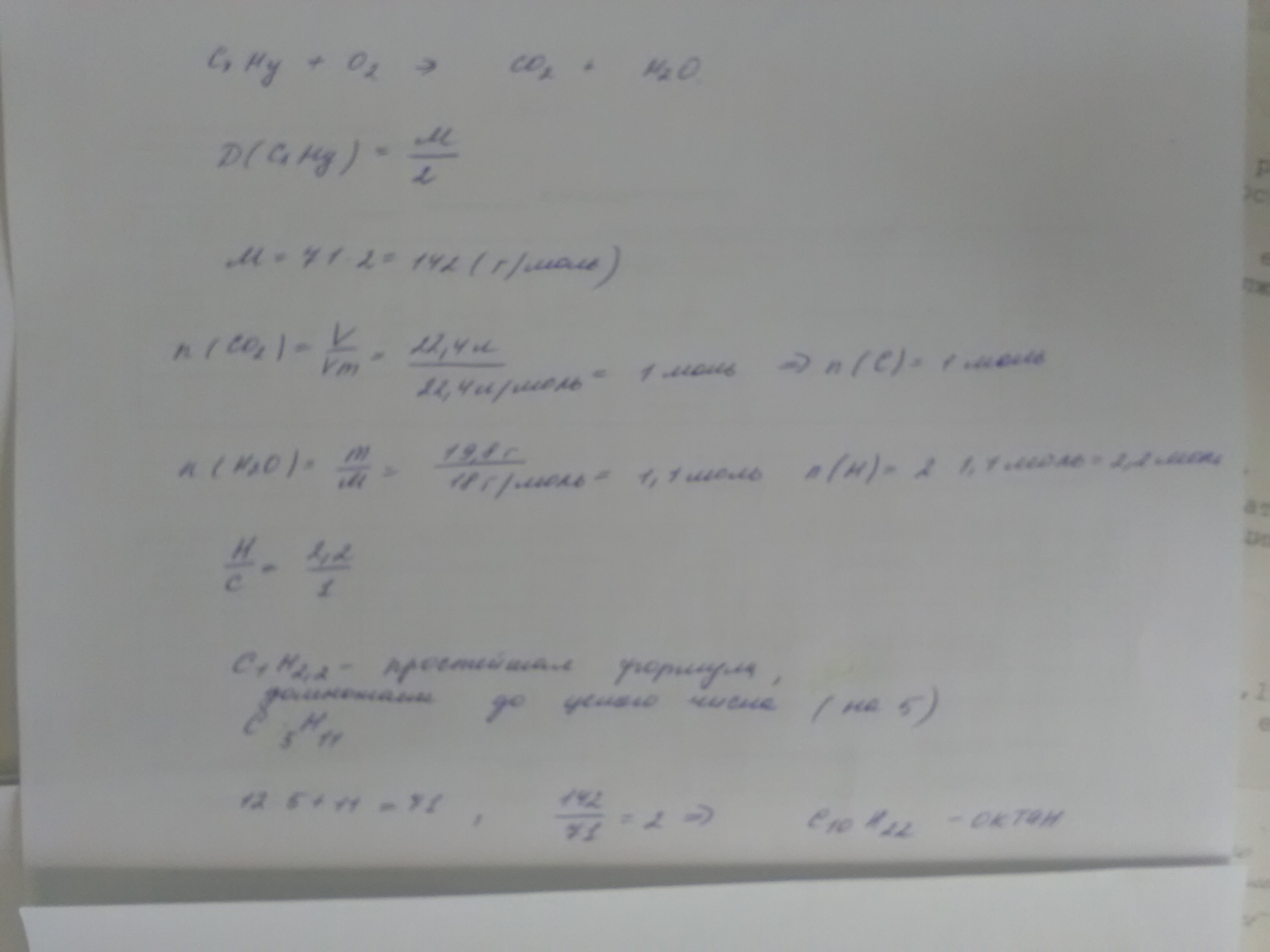 При сгорании 14,2г вещества образуется 22,4 л оксида углерода и 19,8г воды. Плотность этого вещества по отношению к водороду равна 71. Напишите структурные формулы двух изомеров и назовите их.