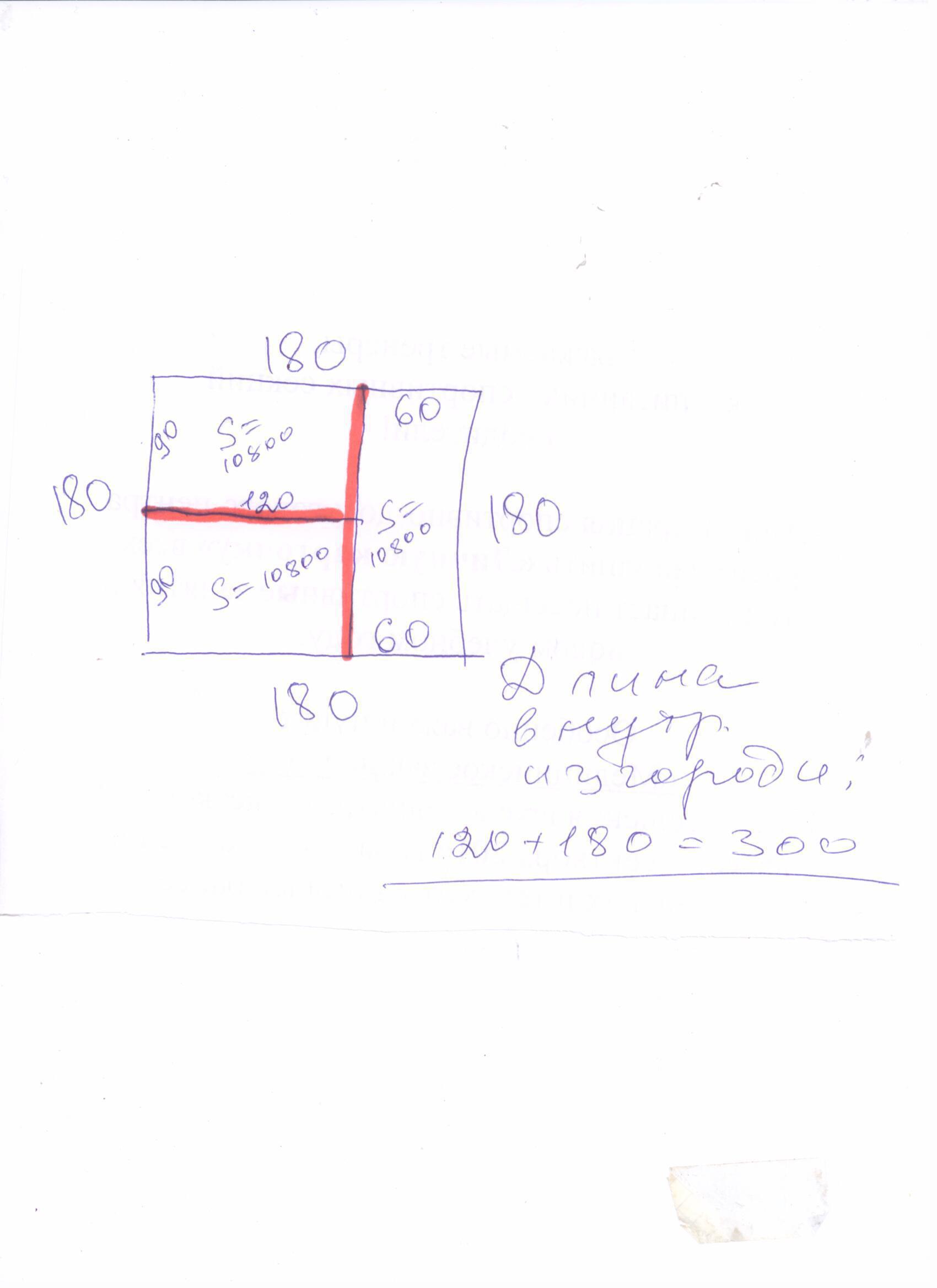 Три поросенка делят квадратный участок земли со стороной 180 на три прямоугольные части равной площади. Какова наименьшая возможная длина изгороди, которую они должны построить внутри квадрата, чтобы отделить участки друг от друга?