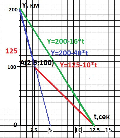 Уравнение будет - Y=125-10*t (не очень нужно)
