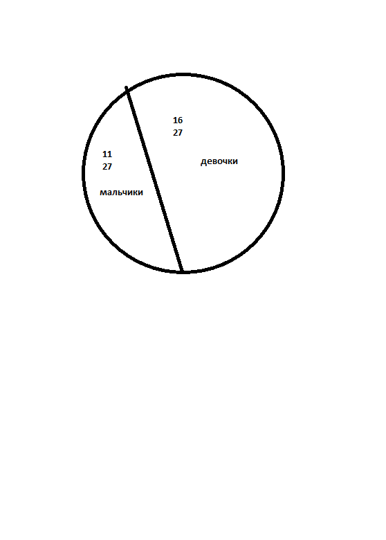 чертишь круг, разделяешь его на две не одинаковые части, в одной пишешь 11 дробь 27-это где поменьше, а где побольше там пишешь 16 дробь 27.