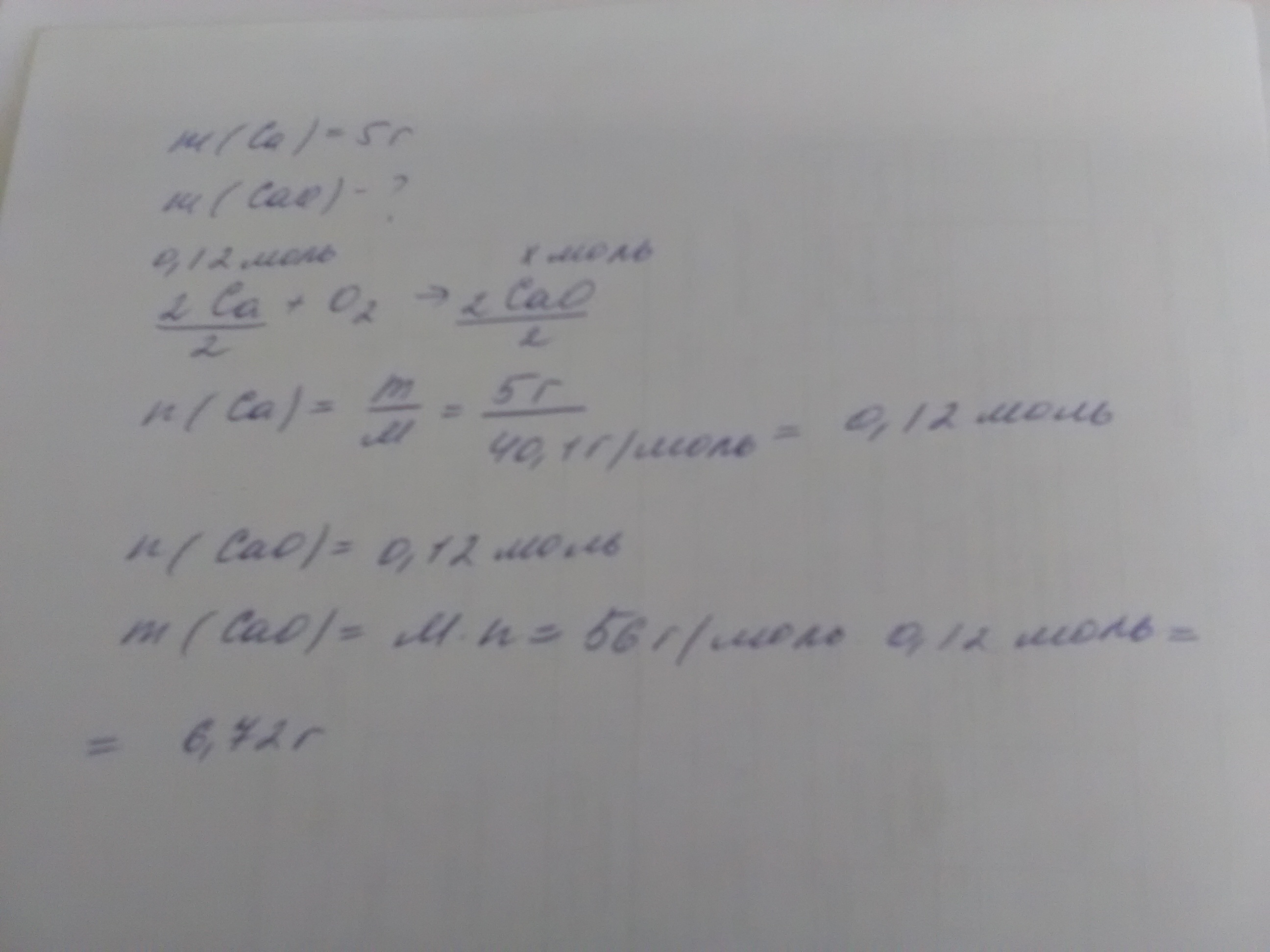 5 гр кальция реагирует с кислородом ,сколько граммов оксида кальция получится?