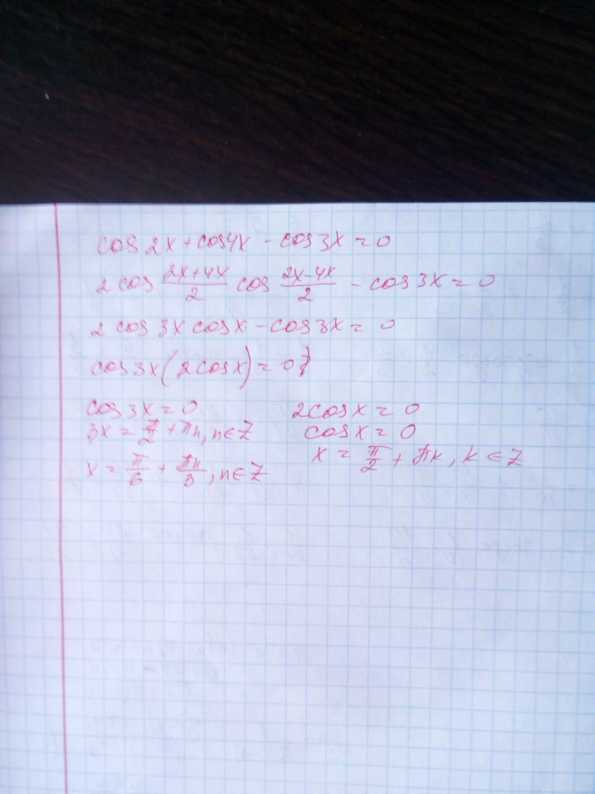 cos3x=0⇒3x=π/2+πn⇒x=π/6+πn/3,n∈z