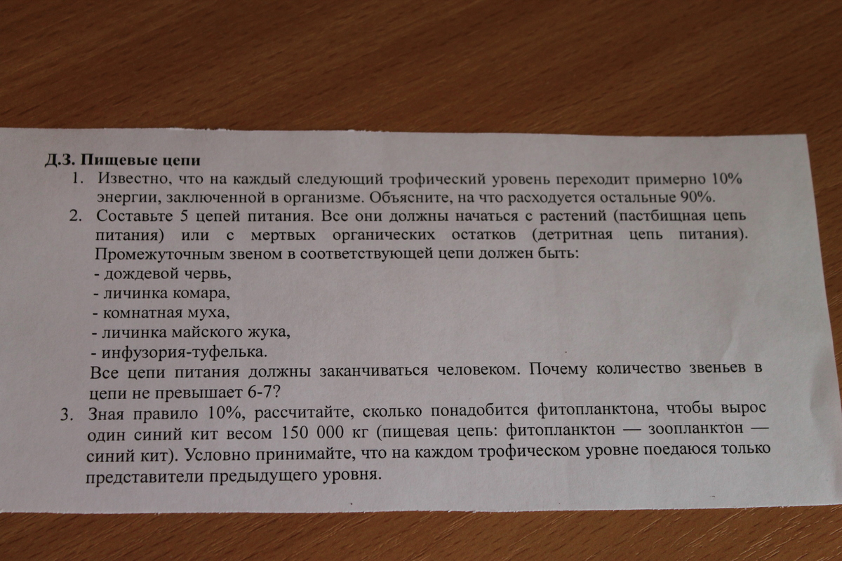 1. 90% энергии тратится на поддержание жизнидеятельности организмов, слагающих предыдущей уровень;