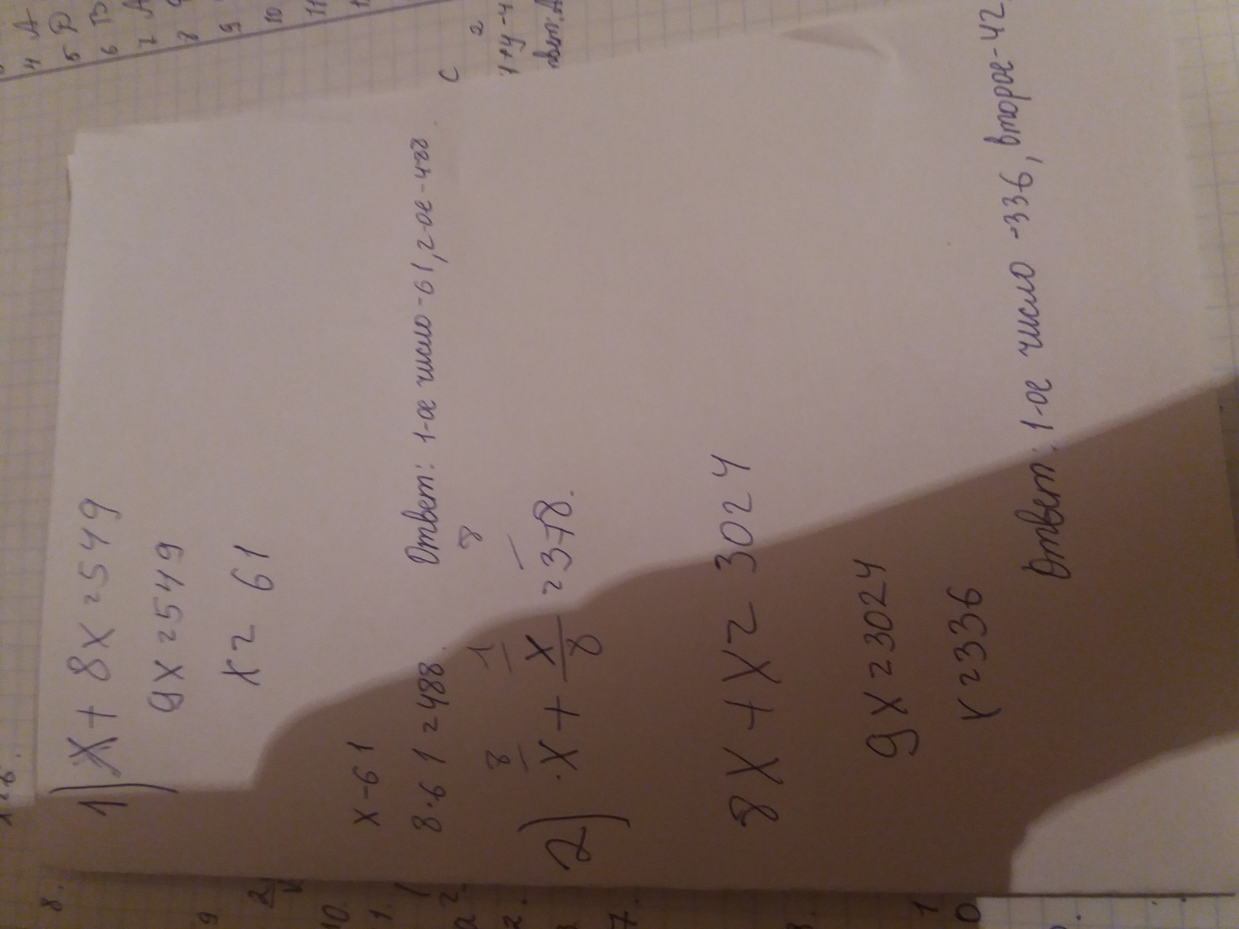 решите задачу: 1) Сумма двух чисел 549. Одно из них а 8 раз больше другого. Найдите эти числа. 2)Сумма двух чисел 378. Одно из них в 8 раз меньше другого. Найдите эти числа