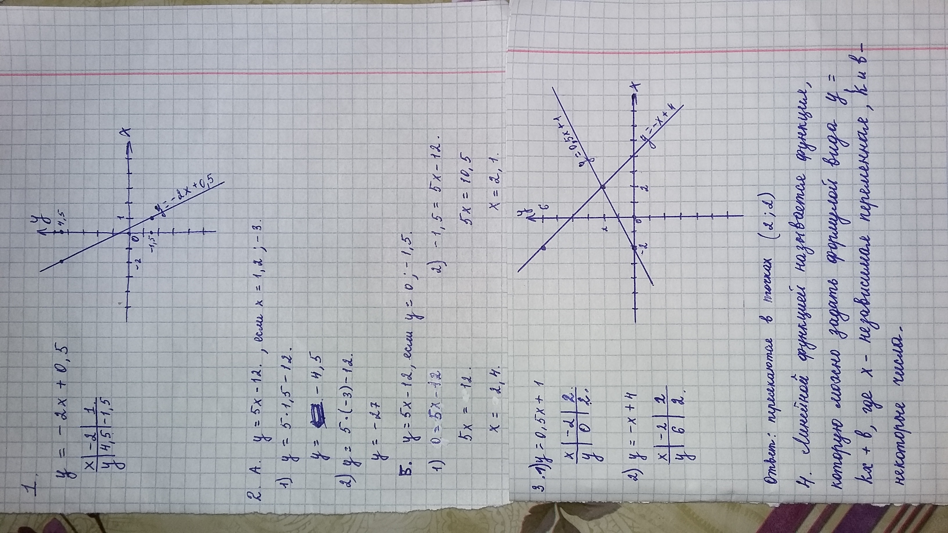 1. Постройте график функции заданной формулой y= -2X+0,5